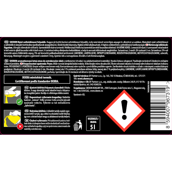 Nyári szélvédőmosó folyadék, illatosított (citrom), magas rovaroldó hatású, sárgaszínű, prémium nyári szélvédőmosó folyadék. Közvetlenül, higítás nélkül az ablakmosó folyadéktartályba töltendő.