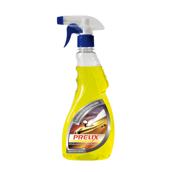 Prelixszélvédő- és üvegtisztító folyadék, szórópisztolyos, 500ml.A flakont rázzuk fel, majd kb. 10 cm távolságról egyenletesen szórjuk le a felületet! Hagyjuk hatni kb. 10 másodpercig, majd puha, lehetőleg nem bolyhozó textíliával, esetleg háztartási papírtörlővel töröljük szárazra! Szükség esetén ismételjük meg a kezelést, ügyelve arra, hogy ezúttal a törlő tiszta felületét használjuk! R10: Kevésbé tűzveszélyes! S2: Gyermekek kezébe nem kerülhet! S23: A keletkező permetet nem szabad belélegezni! S26: Kerülni kell a szembejutást! S46: Lenyelése esetén azonnal orvoshoz kell fordulni, az edényt és a címkét az orvosnak meg kell mutatni! Összetevők: izopropil-alkohol, anionos és nemionos felületaktív anyagok <; 5 %, illat, színezék, víz.