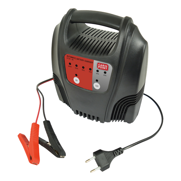 6-12V, 4A akkumulátor töltő. Egyszerűen leolvasható állapot jelző, LED-ek, bemeneti feszültség: 230-240V, 50Hz, Kimenet: 6-12V ,DC -2,8A Max töltőáram (RMS): 4A Tölthető akkumulátor: 12-60Ah. Hagyományos ólomsavas akkumulátorokhoz.