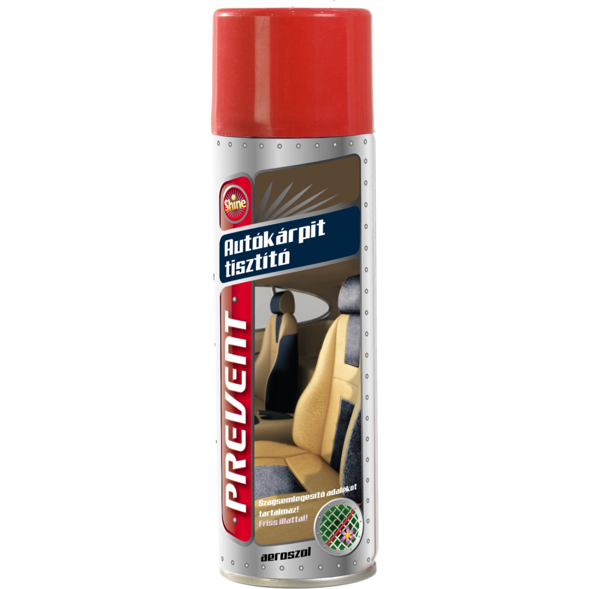 PREVENT autókárpit tisztító aerosol: Tartalma: 300 ml e, Méret: 5,6 cm x 28 cm, Súly:0,39 kg Paraméterek, tulajdonságok:propán-bután hajtógáz, anionos tenzidek, polimer diszperzió, illat, víz. Felhasználási terület:A termék mélyen a szálak közé hatolva távolítja el a szennyeződéseket a természetes és műszálas alapú kárpitból, szőnyegből. A felület visszanyeri eredeti tisztaságát, élénk, selymes színeit. Az aeroszol hagyományos szórófejes és speciális tisztítókefés változatban egyaránt kapható. Használata:A kárpitot alaposan porszívózzuk ki! Az aeroszolt rázzuk fel! A szórófejes terméknél a palackot fejjel lefelé fordítva egyenletesen permetezzük be a felületet, majd szivaccsal vagy kefével jól dörzsöljük át! A tisztítókefés termék használatakor a palackot fejjel lefelé fordítva, a szórófejet benyomva, a kefét körkörösen mozgatva egyenletesen oszlassuk el a habot, majd alaposan dörzsöljük át a felületet! Száradás után a tisztított kárpitot ismét keféljük át, vagy porszívózzuk ki! Makacs szennyeződés esetén a tisztítást ismételjük meg!