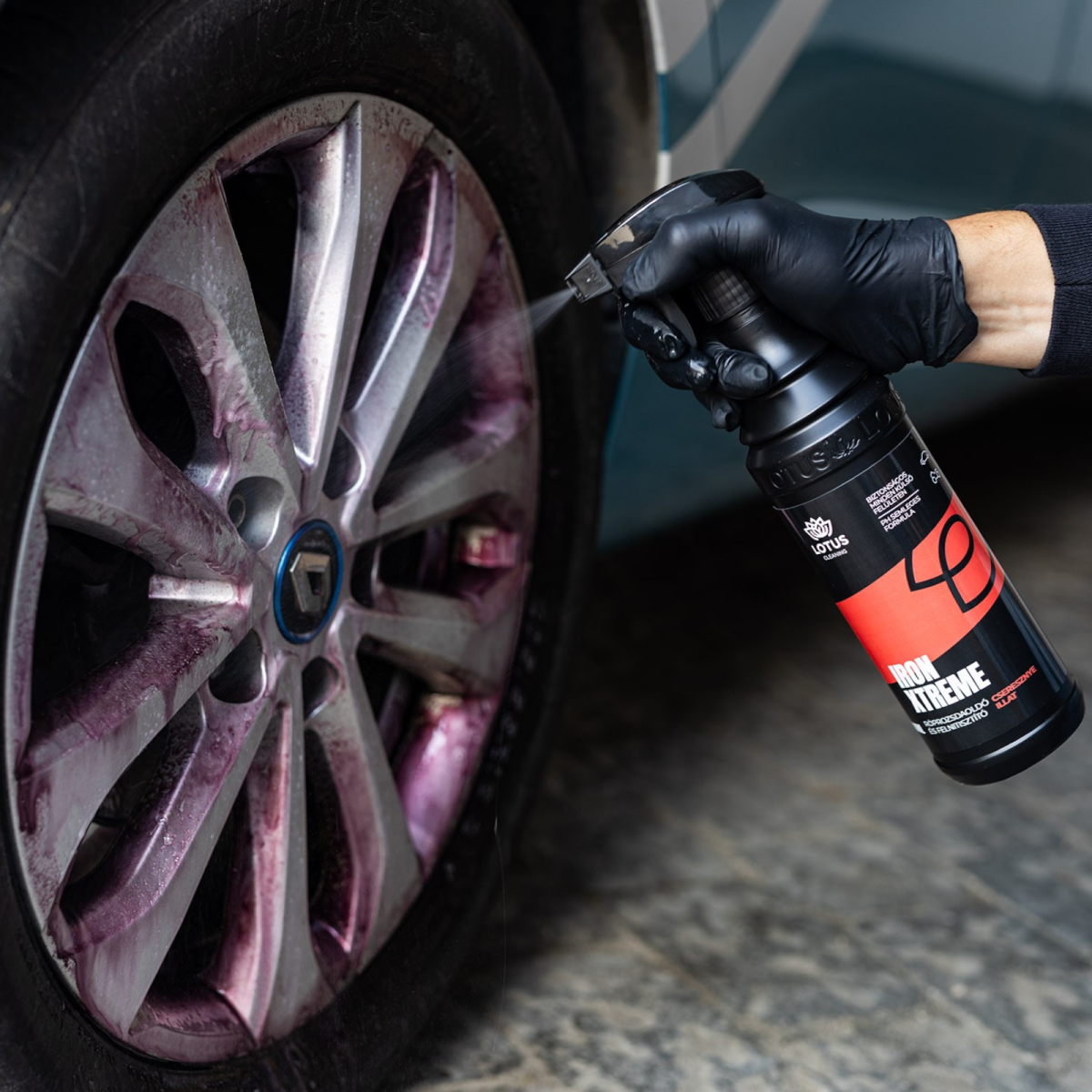 A piros szín akkor keletkezik, amikor a termék érintkezésbe kerül a szennyeződéssel. Tökéletesen megmutatja, hogy mennyi szennyeződés halmozódott fel a felületen. A termék állaga zselés és olyan vastag, hogy könnyen behatol a kerék peremének teljes felületébe, miközben lassan áramlik át rajta. A termék alumínium, króm és zománcozott keréktárcsák tisztítására használható.