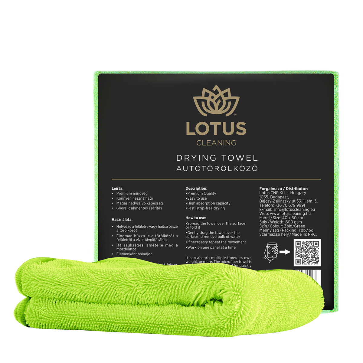 Különleges szerkezetű törölköző, amely súlyának hétszeresét képes felszívni! Tökéletesen folt-, csík- és karcmentes végeredményt biztosít a mosás után. Rendkívül magas minőségű, kiváló nedvszívó képességű törölköző. Legjobb eszköz arra, hogy karc nélkül szárazra törölhesd járműved. Súlyának akár 7x-ét is képes felszívni. A nagyon puha, mikroszálas anyag minden területen alkalmazható, biztosítja a csík- és foltmentes végeredményt a tisztítás után. Használati útmutató: Alaposan tisztítsd meg a járműved, majd jól öblítsd le. Terítsd szét a törölközőt a szárítani kívánt felületen. Nem nyomva, húzd le a felületen maradt vízcseppeket. Szükség esetén ismételd meg újra a műveletet. Száraz felületeken kíméletesen használd. A törölköző mosható, újra felhasználható. Méret: 40 x 60 cm.