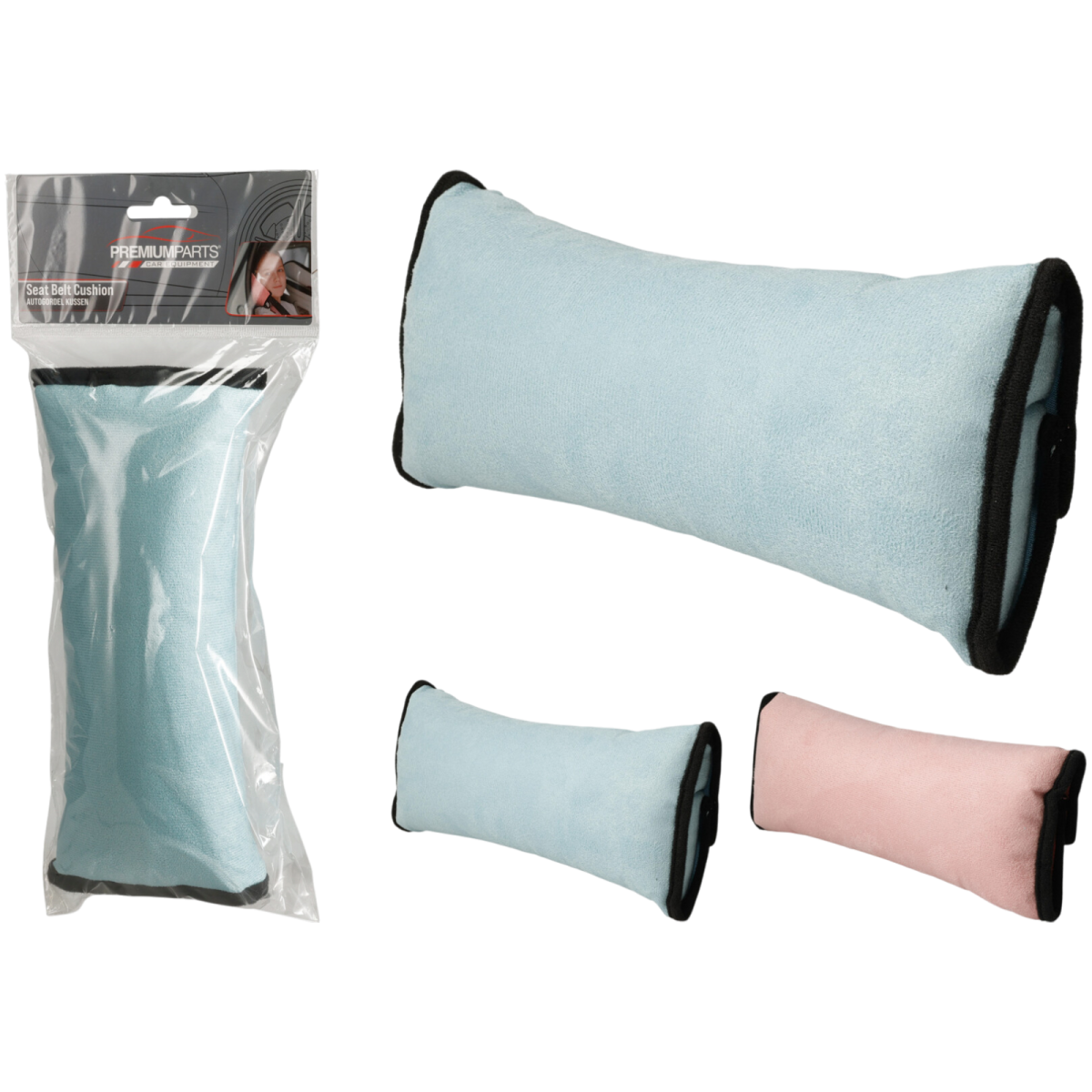 A 25×7×4 cm-es biztonságiöv párna kényelmesebb utazást biztosít, mivel puhítja az öv érintkezését a vállnál és a nyaknál. Poliészter anyaga puha tapintású és könnyen tisztán tartható. Kétféle színben érhető el: rózsaszín és kék.
