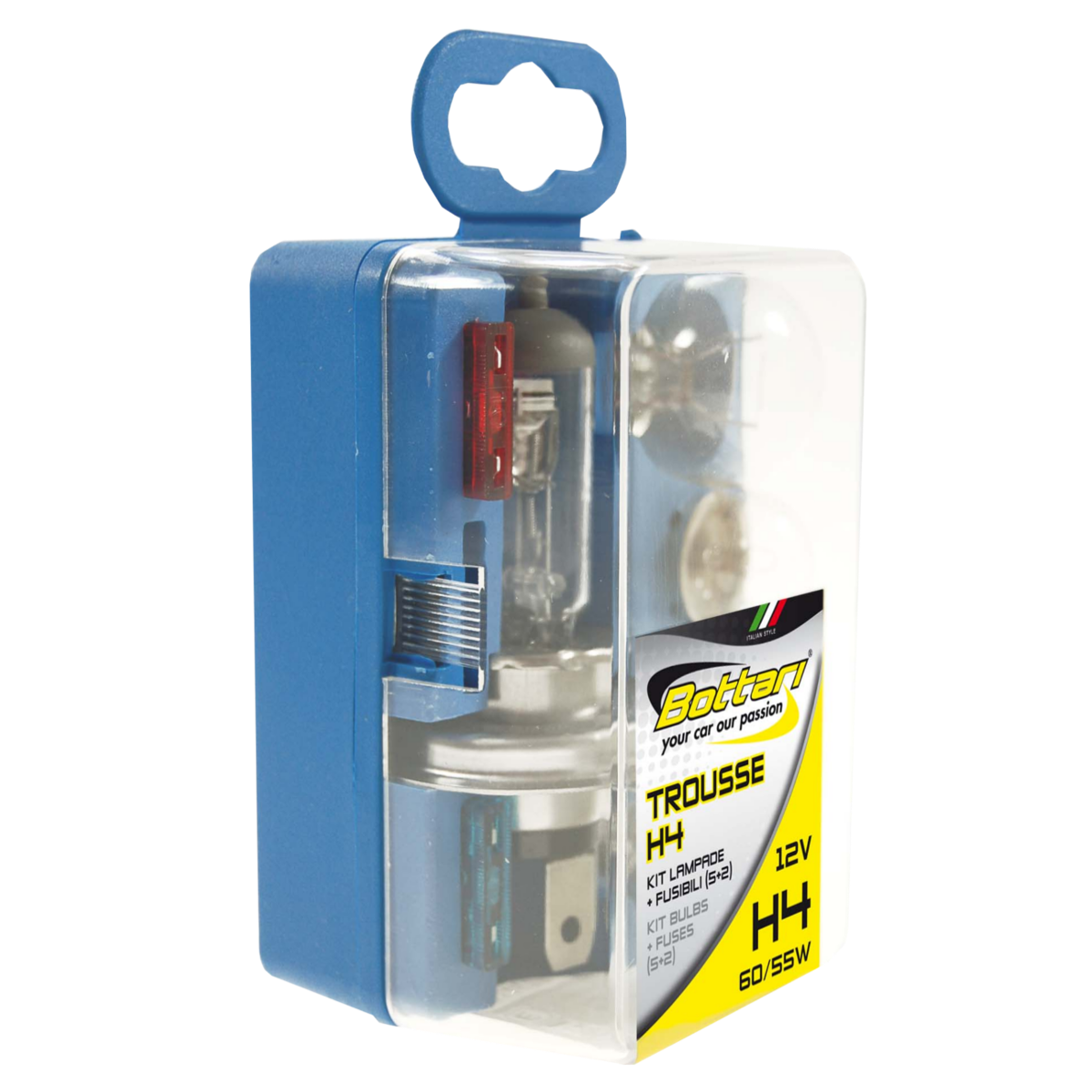 A Bottari H4 7 részes izzó szett tartalmaz 5 darab H4 izzót és 2 darab biztosítékot. A szett 12 V, 60/55 W teljesítménnyel rendelkezik, így biztosítva a megfelelő világítást az úton. Praktikus és hasznos kiegészítő, amely segít a gyors izzó- és biztosítékcserében.