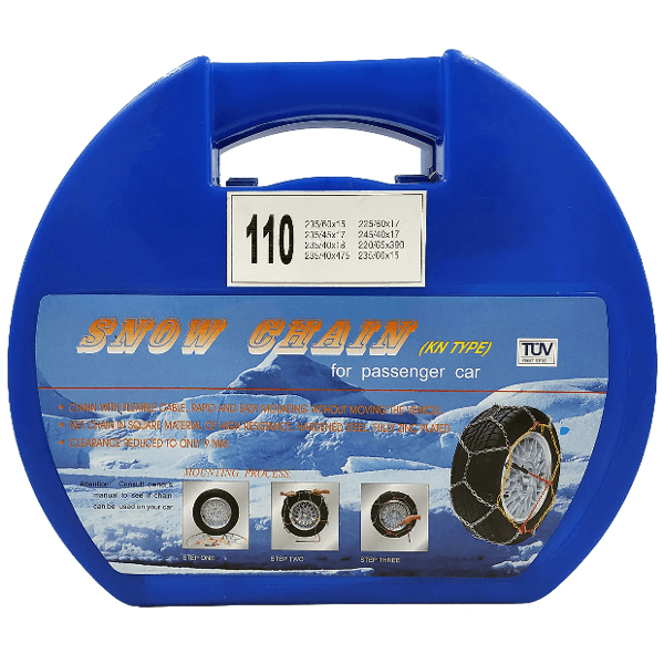Rombusz mintás hólánc, 9 mm 110-es méret. Szögletes edzett acél láncszemek, cink bevonattal, Flexibilis sodrony kábeles rögzítés. Jármű mozgatása nélkül felszerelhető. Gyors rögzítést tesz lehetővé, 9mm-es láncszemek miatt alacsony helyigény a kerékjárati ívben.