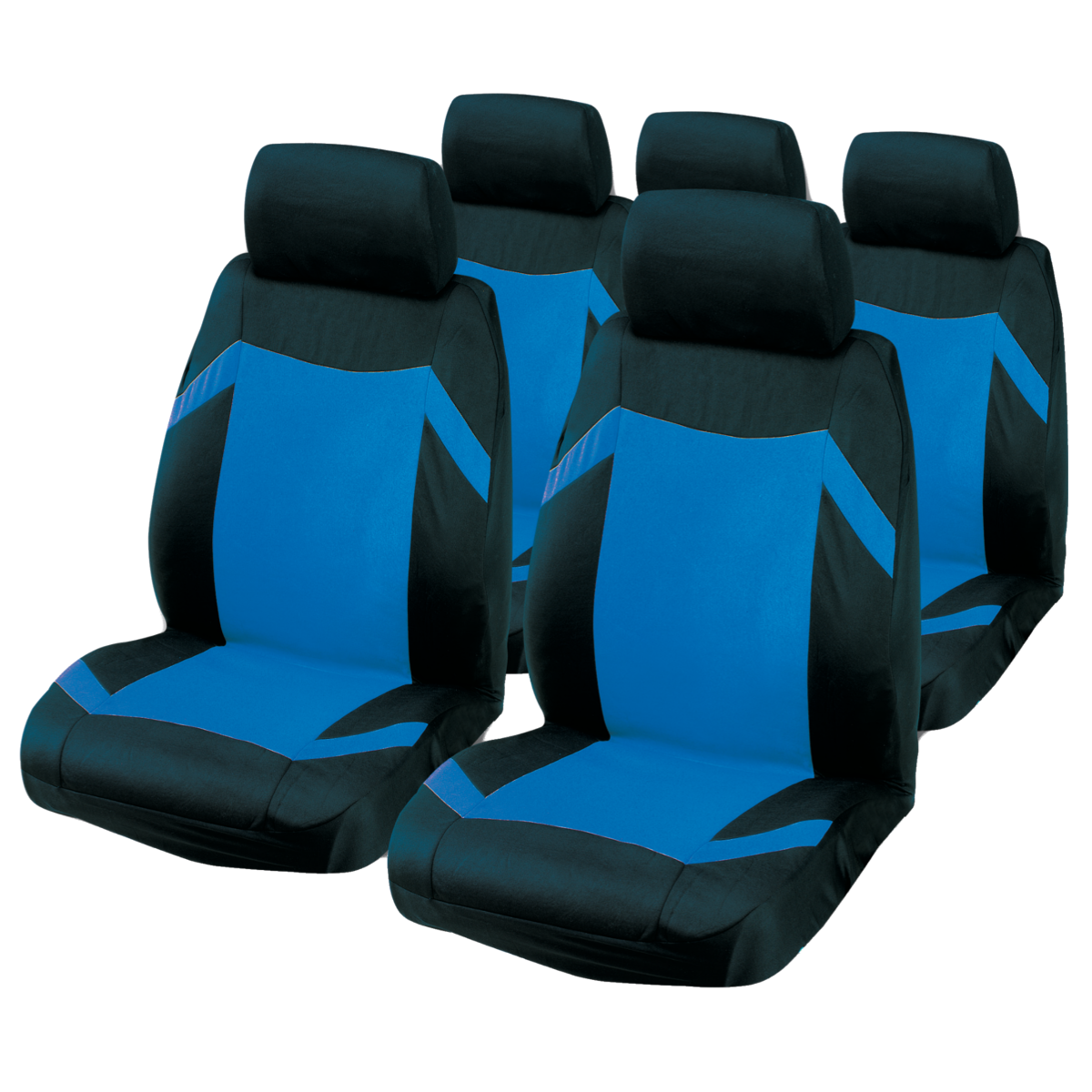 Üléshuzat szett "KEEN", 9 részes (5 fejtámla, 2 első, 2 hátsó), univerzális méret, kék színben kapható.