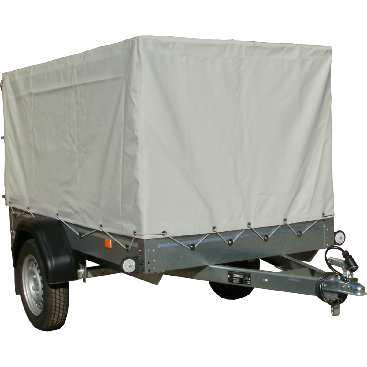 Szürke színű, 1500x1140x850 mm méretű ponyva Alfa 11511 utánfutóhoz, mely a 251069 Praktiker cikkszámon külön megvásárolható.