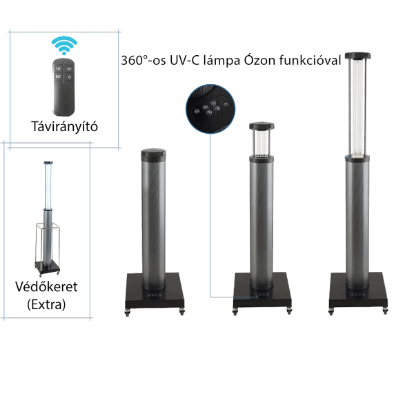 Az összecsukható lámpatartó és a 360 fokos univerzális kerekek kényelmessé teszik a tárolást és a mozgatást, 99,99%-ban elpusztítja a vírusokat. 3 időbeállítás: 15, 30, 60 perc, a termék automatikusan leáll, ha befejezte a fertőtlenítést.