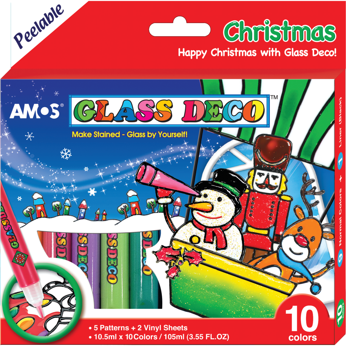 Üvegfesték készlet tartalma: 10 db 10,5 ml-es festék, 5 db sablon, 2 db fólia.