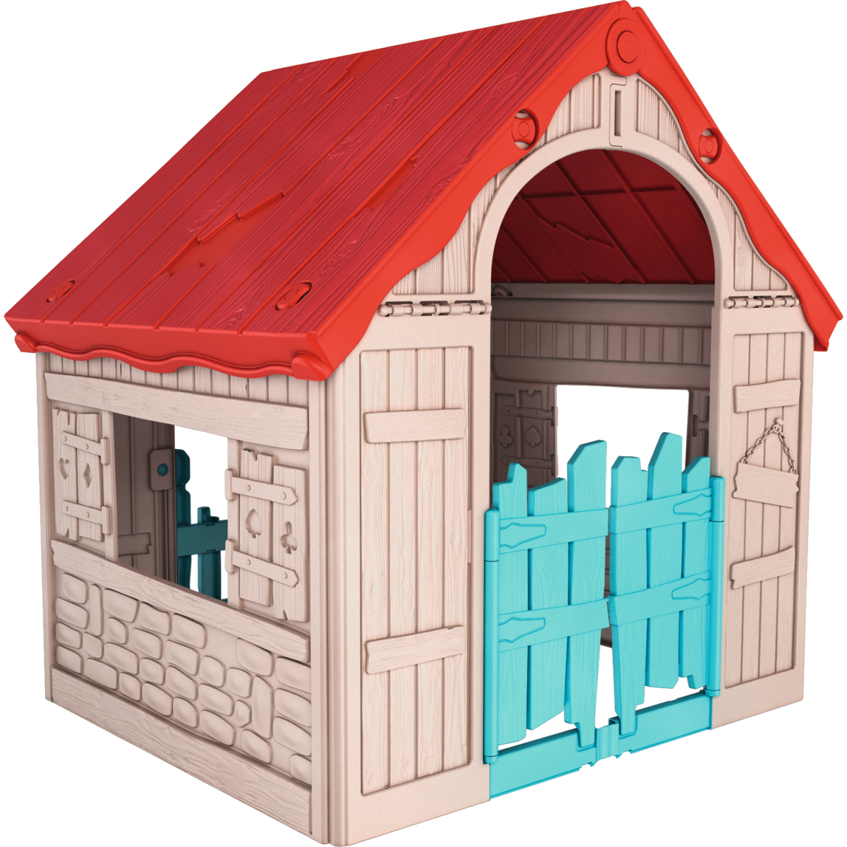 A Foldable gyerekházban minden lehetséges. Tágas belső terek, mesés színek, nyeregtetős és egy csodálatos kerítés, cserélhető ajtó, ez mind örömet fog okozni minden gyereknek és felébreszti képzelet világát. Az okos tervezés és a speciálisan lekerekített sarkok minden elem biztosítja a tökéletes biztonságot játék során. Abszolút előnye ennek a terméknek egy innovatív módon történt össze- illetve szétszerelése. Elég egy perc a termék összeállításához. A termék könnyen lehet tisztán tartani.