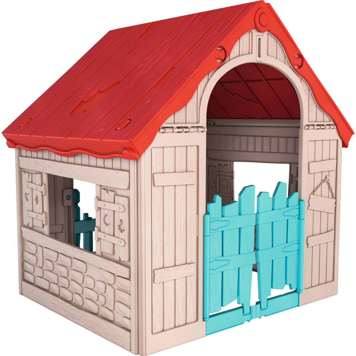 A Foldable gyerekházban minden lehetséges. Tágas belső terek, mesés színek, nyeregtetős és egy csodálatos kerítés, cserélhető ajtó, ez mind örömet fog okozni minden gyereknek és felébreszti képzelet világát. Az okos tervezés és a speciálisan lekerekített sarkok minden elem biztosítja a tökéletes biztonságot játék során. Abszolút előnye ennek a terméknek egy innovatív módon történt össze- illetve szétszerelése. Elég egy perc a termék összeállításához. A termék könnyen lehet tisztán tartani.