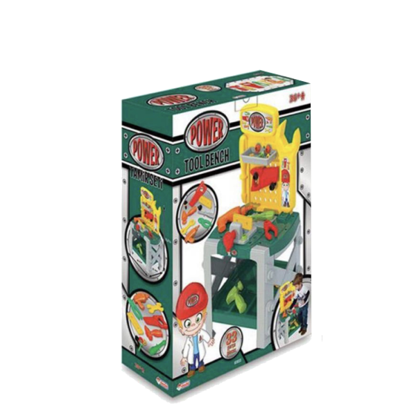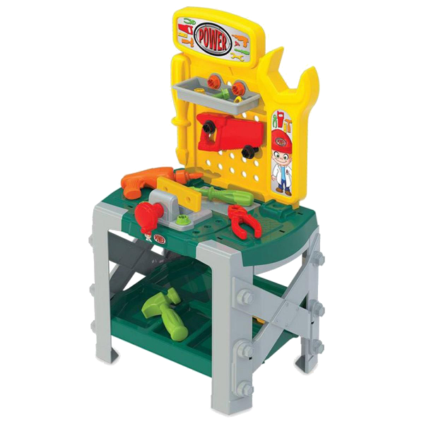 Játék barkácsasztal. Méretei: 44X74X29 cm.Tanuld meg minél több szerszám használatát könnyedén! A Barkácsasztal 11 kiegészítővel egy nagyobb méretű, sárga, zöld és szürke színű szerszámos barkácsműhely mindenféle eszközzel felszerelve. A satuba be tudod fogatni a munkadarabokat, a lyukakba pedig csavarokat, anyákat tudsz befogatni. Gyakorold a szerszámok kezelését, és közben a műszaki érzéked, kézügyességed is fejlődni fog!