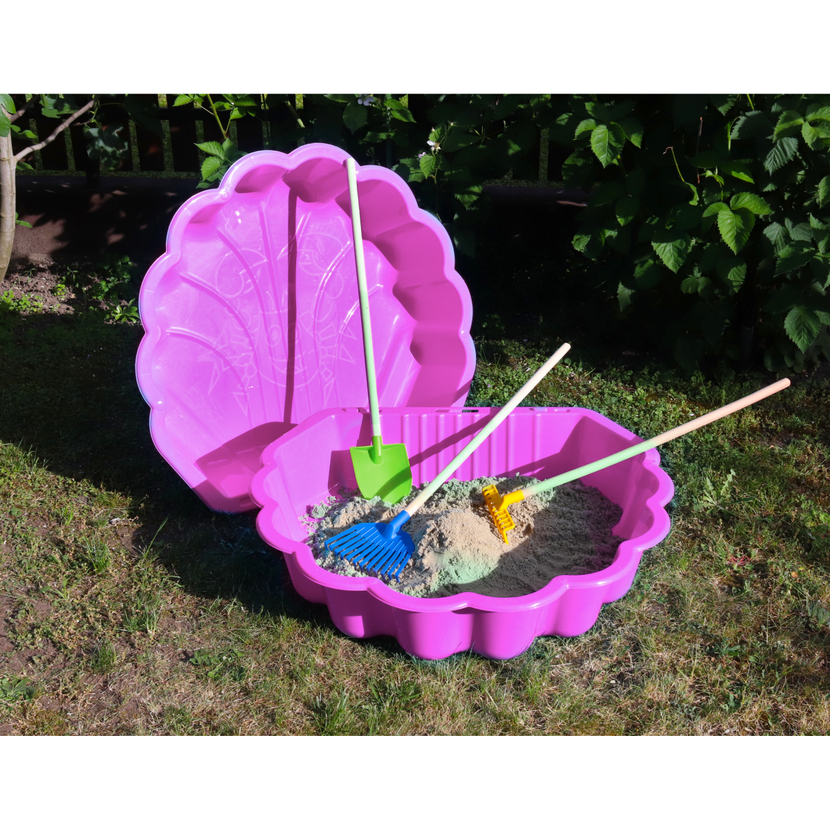 A Dublino kagyló alakú homokozó és pancsoló ideális választás a kültéri játékhoz. A strapabíró, hőre lágyuló műanyagból készült két részes készlet egyik fele homokozónak, másik fele pancsolónak használható, így a gyerekek változatos módon élvezhetik a szabadtéri időtöltést. Könnyen tisztítható, nem karcoló hatású mosogatószerrel egyszerűen leöblíthető.