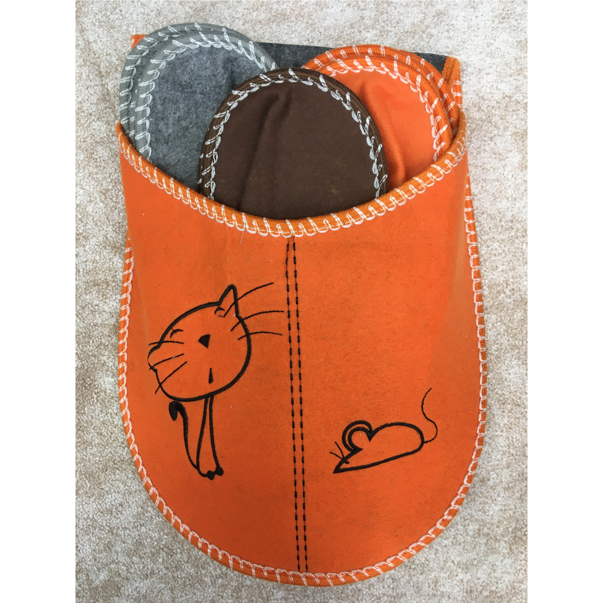 5 db-os poliészter vendégpapucs szett, nagy gyűjtő-/tárolópapucsban/különböző mintájú, színű gyűjtőpapucsban. Az 1-1 pár papucs különböző méretben, színben van a csomagban. Méretek: 38-39 40-41 42-43 44-45 46-47.