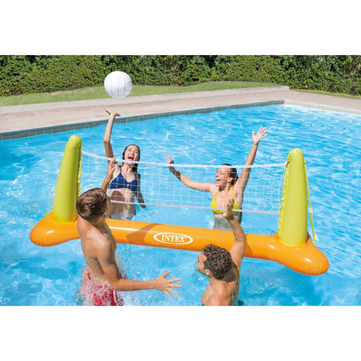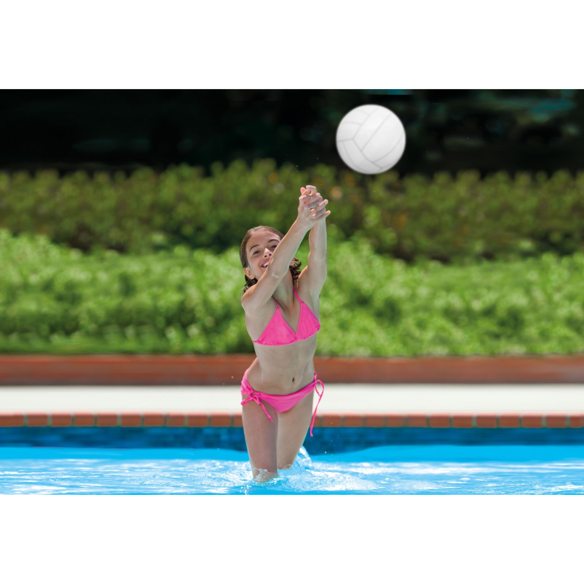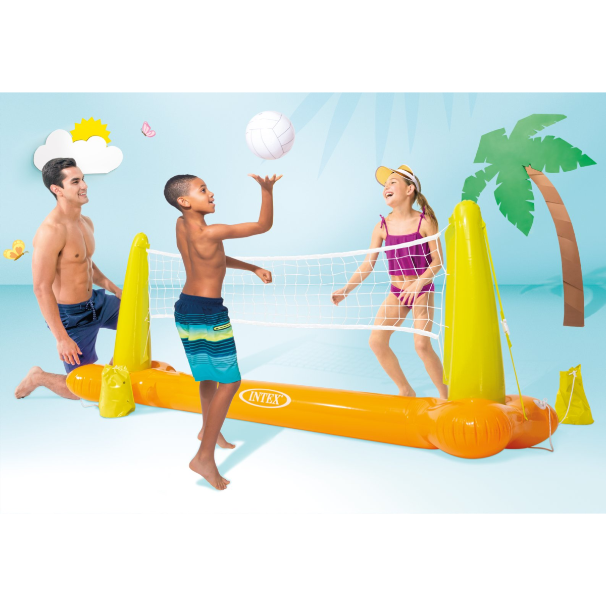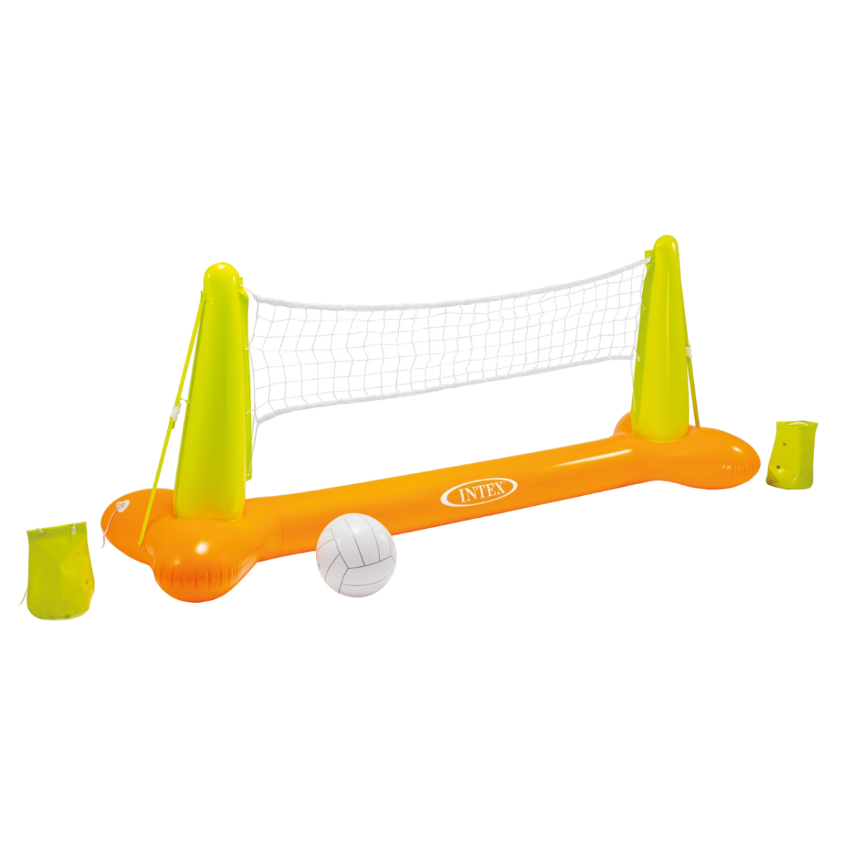 Az Intex felfújható röplabda vízijáték egy fantasztikus kiegészítő a nyári szórakozáshoz a medencében. Ez az úszó röplabda játék ideális a baráti és családi összejövetelekhez, és garantáltan feldobja a medencés partit. A játék tartalmaz egy strapabíró 10-es erősségű vinyl hálót és egy egy felfújható labdát, így könnyedén összeállítható és azonnal használatra kész. Felfújt mérete: 239 x 64 x 91 cm. Javítókészlet található a csomagban. Súlyokkal rögzíthető, hogy a háló stabilan maradjon. Ajánlott 6 éves kortól Ez a termék tökéletes választás mindenkinek, aki szeretne egy kis versengést és szórakozást vinni a medencébe a forró nyári napokon