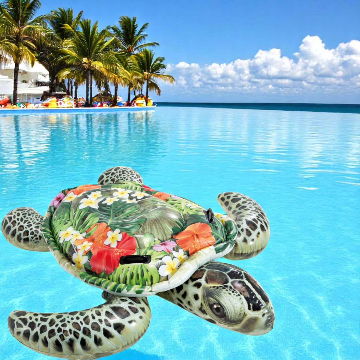 Intex teknős formájú, 2 légkamrás lovagló matrac. Gyerekek és felnőttek részére egyaránt ideális, hiszen játékhoz és napozáshoz is használható matrac. Valósághű, színes mintázata figyelemfelkeltő a vízben és a parton is. Bőrbarát, minőségi vinylből készült, így játék közben sem szakad ki. Nagy ülőfelülete mellett 2 kapaszkodó gondoskodik a használat közbeni biztonságról. Javítófoltot tartalmaz. Mérete: 191 cm x 170 mm.