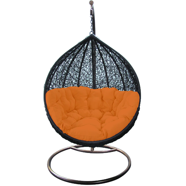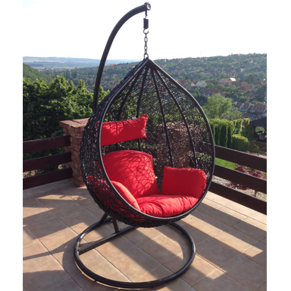 "Casa" műrattan függőfotel. Kényelmes, műrattan kosár, porszórt fém váz, puha párnák. Színek: fekete/narancs; fekete/piros. Teherbírás: 100 kg, méret: 205x98x110 cm.