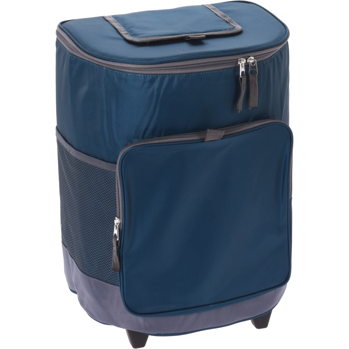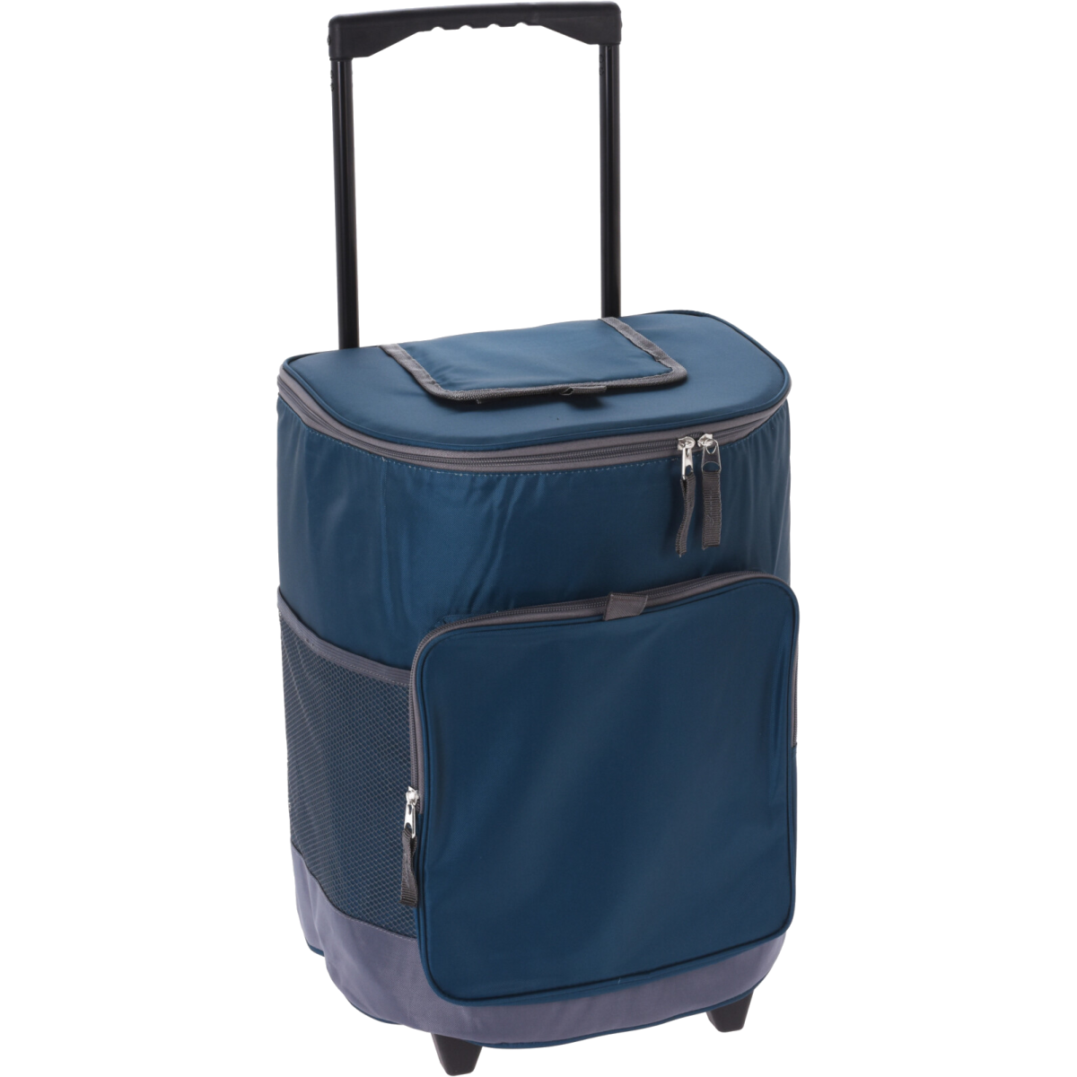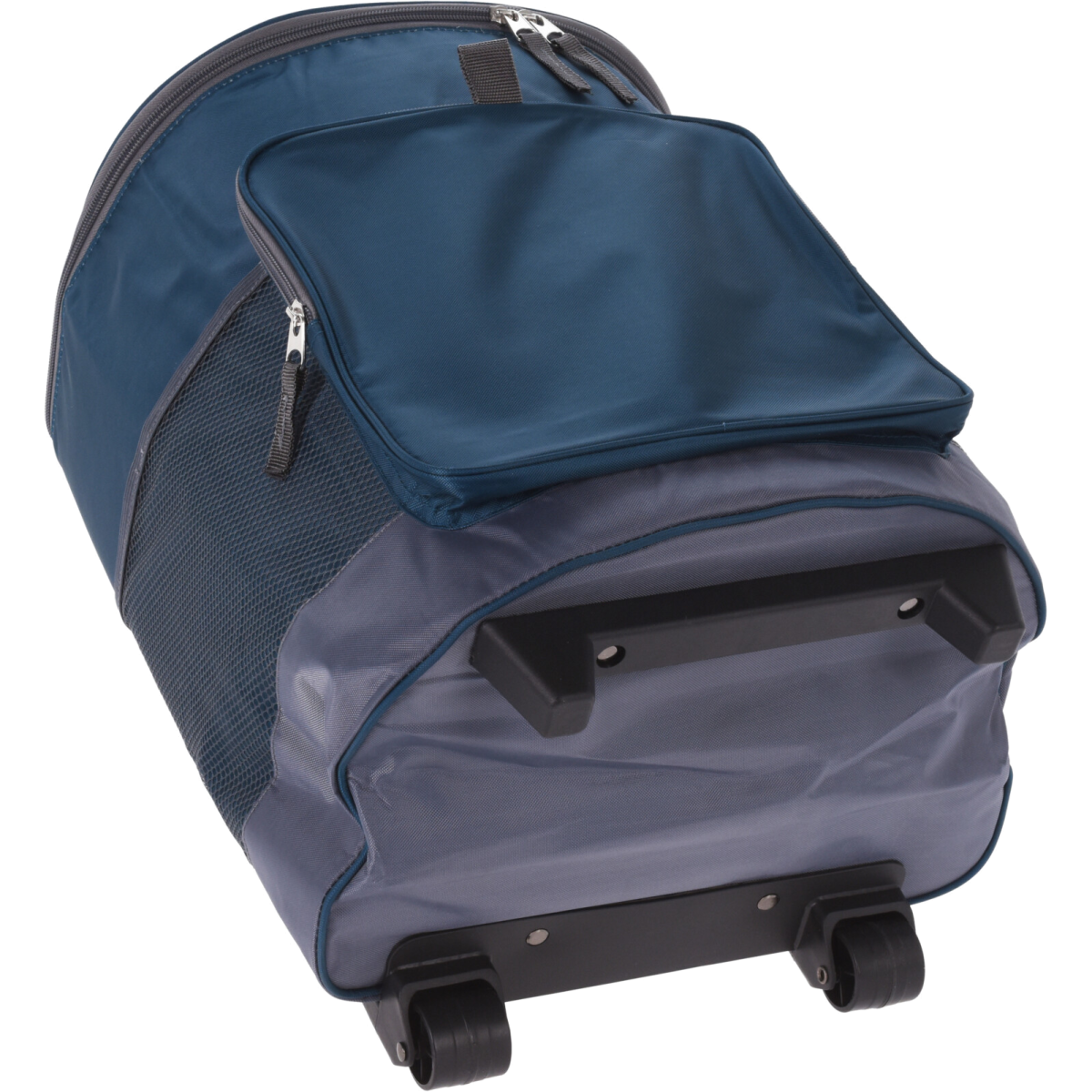 28 literes, cipzáros, húzható gurulós szerkezettel, 1 féle modell. Kék színben.