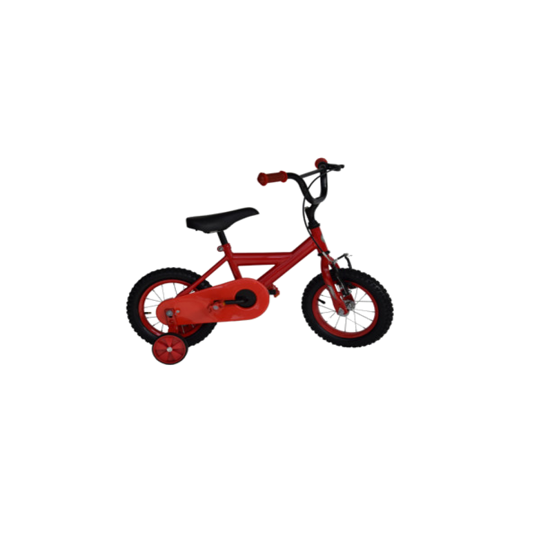 Gyermek kerékpár 12-es - piros - acél váz és kormány - kerék: gumi,felfújható - kontra- / V-fék - támasztó kerekekkel - teljes láncvédővel