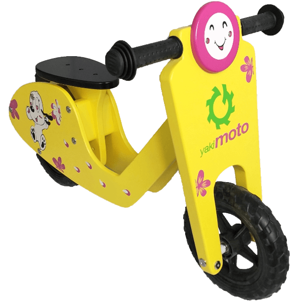 Gyermekjármű, fa rétegelt lemezből, vidám mintával. Max. teherbírás: 30 kg. Összeszerelt méret: 73 x 37 x 51. Ajánlott korosztály: 3-6 év.