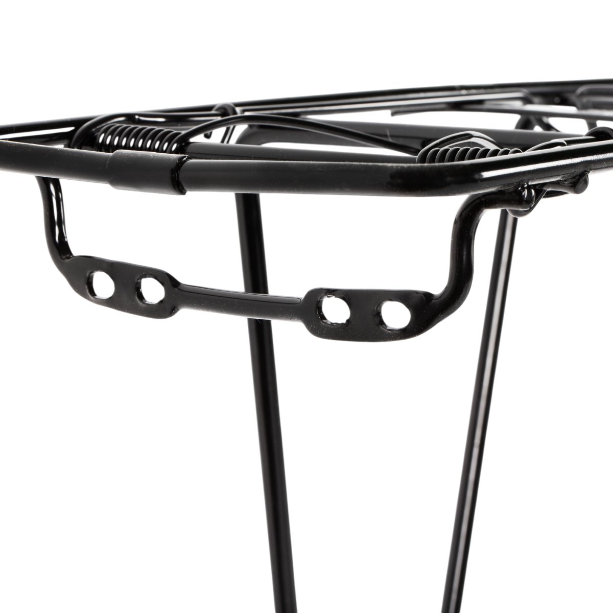 Felnőtt kerékpárhoz való acél huzal csomagtartó fekete színben.7 mm-es acél huzalból készült, porfestett bevonattal rugós csomagrögzítő adapterrel szerelve.