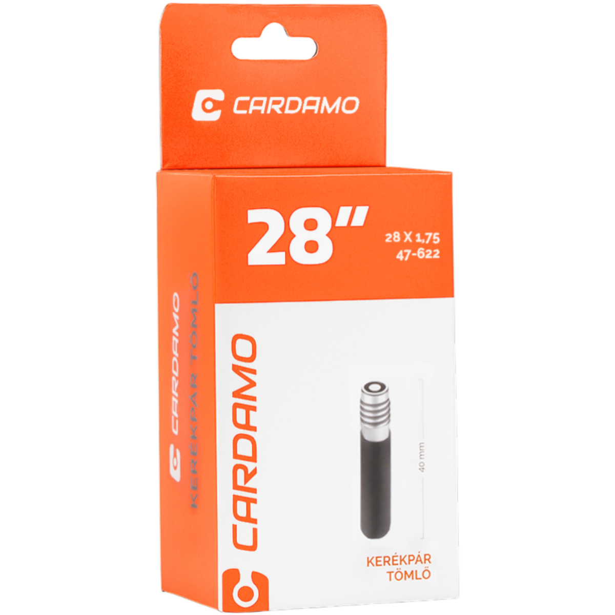 Tömlő 28 x 1,75. Kerékpár belső gumi 622 mm átmérőjű kerékpár külsőbe. Megfelel 44-52 mm vastagságig. A 700 x 45C/48C tömlőkkel kompatibilis. Motor (DV) szelepes.