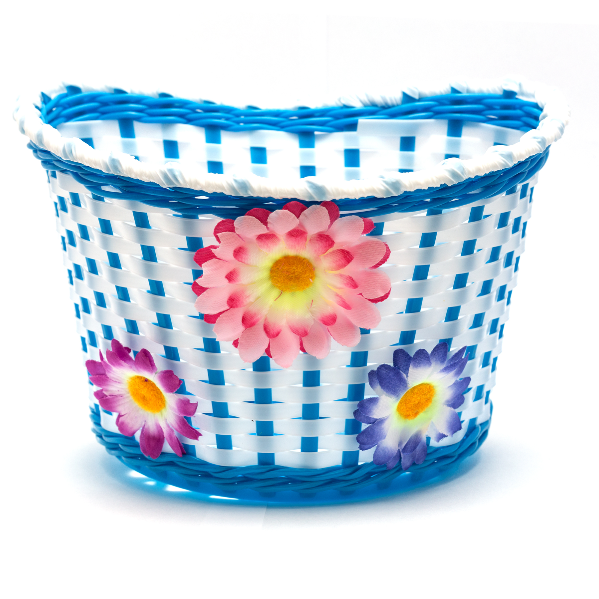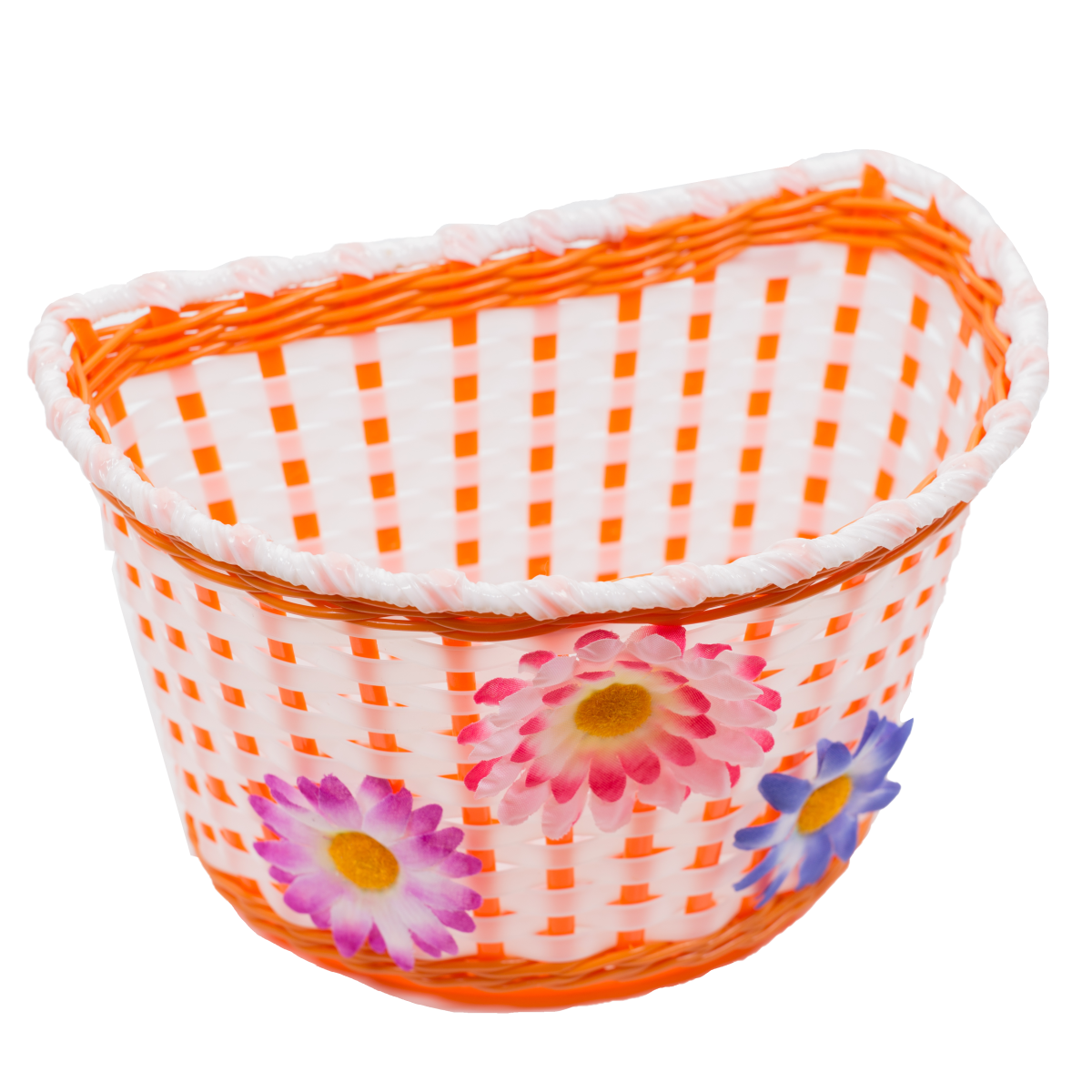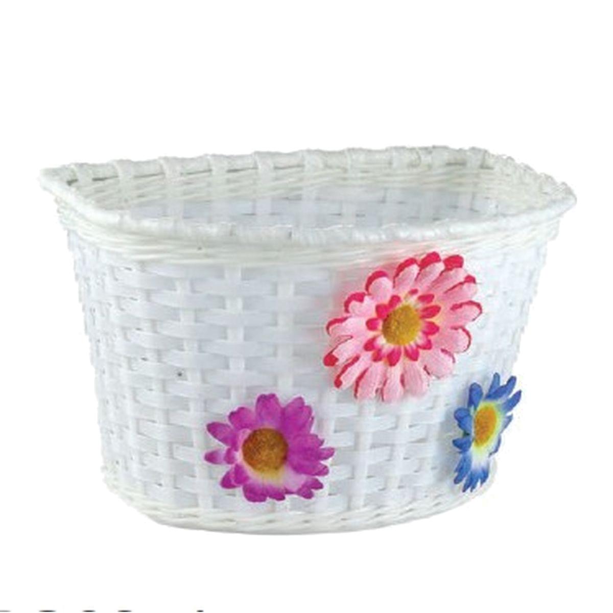 Gyermek kerékpárra szerelhető műanyag kosár. Jól rögzíthető a 12-es, 16-os és 20-as gyerek kerékpárok kormányán. A termék a csomagolásban található műanyag