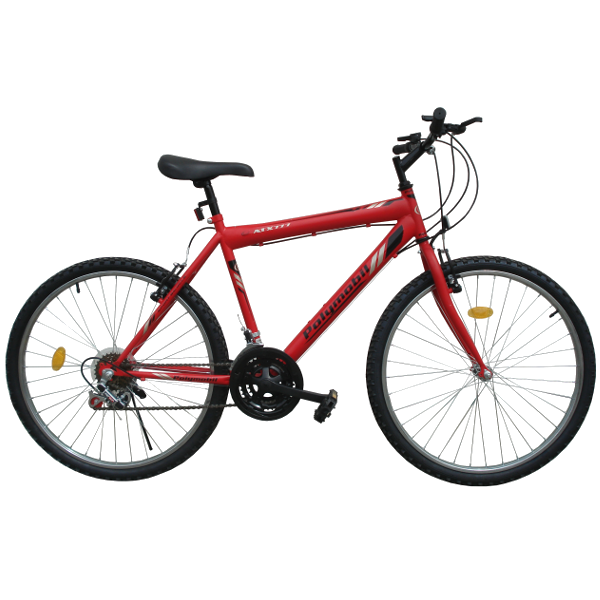 MTB 26-os kerékpár - acél váz és villa - elől-hátúl V-fék - karos váltó - vegyes színekben - 18 sebességes