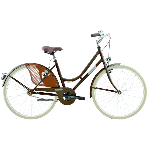 City Kerékpár 26-os Női "Retro Frascona" barna vagy szürke színben,áruházanként eltérő lehet. acél váz és villa ,elől-hátul V fék, Fém sárvédőkkel és elemes világítással rendelkezik. Szoknyavédővel.