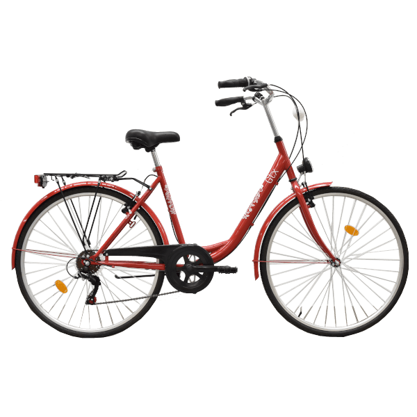 Női kerékpár 6 SPD 28" GTX CITY . Acél váz és acél merev villa, műanyag V fék, 6 sebesség. City felszereltség (sárvédő, csomagtartó, világítás).