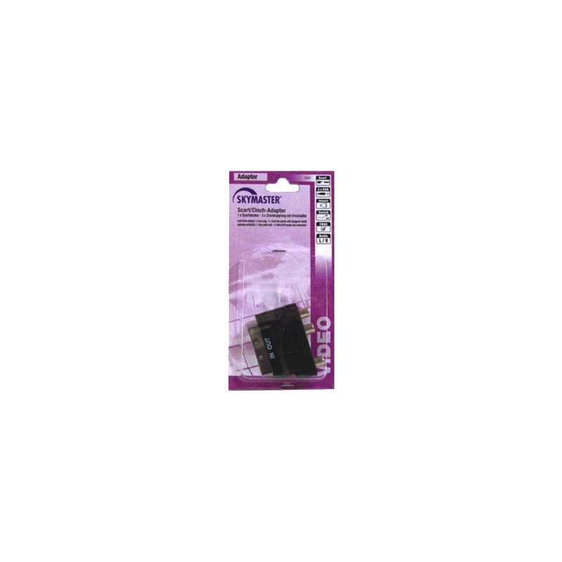 SCART-RCA audio/video adapter, átváltó kapcsolóval. Segítségével, RCA kábellel tudunk csatlakozni SCART aljzathoz. Videó lejátszók, vagy SAT vevők csatlakoztatása TV készülékhez. Kapcsolható BE vagy KI-menet.