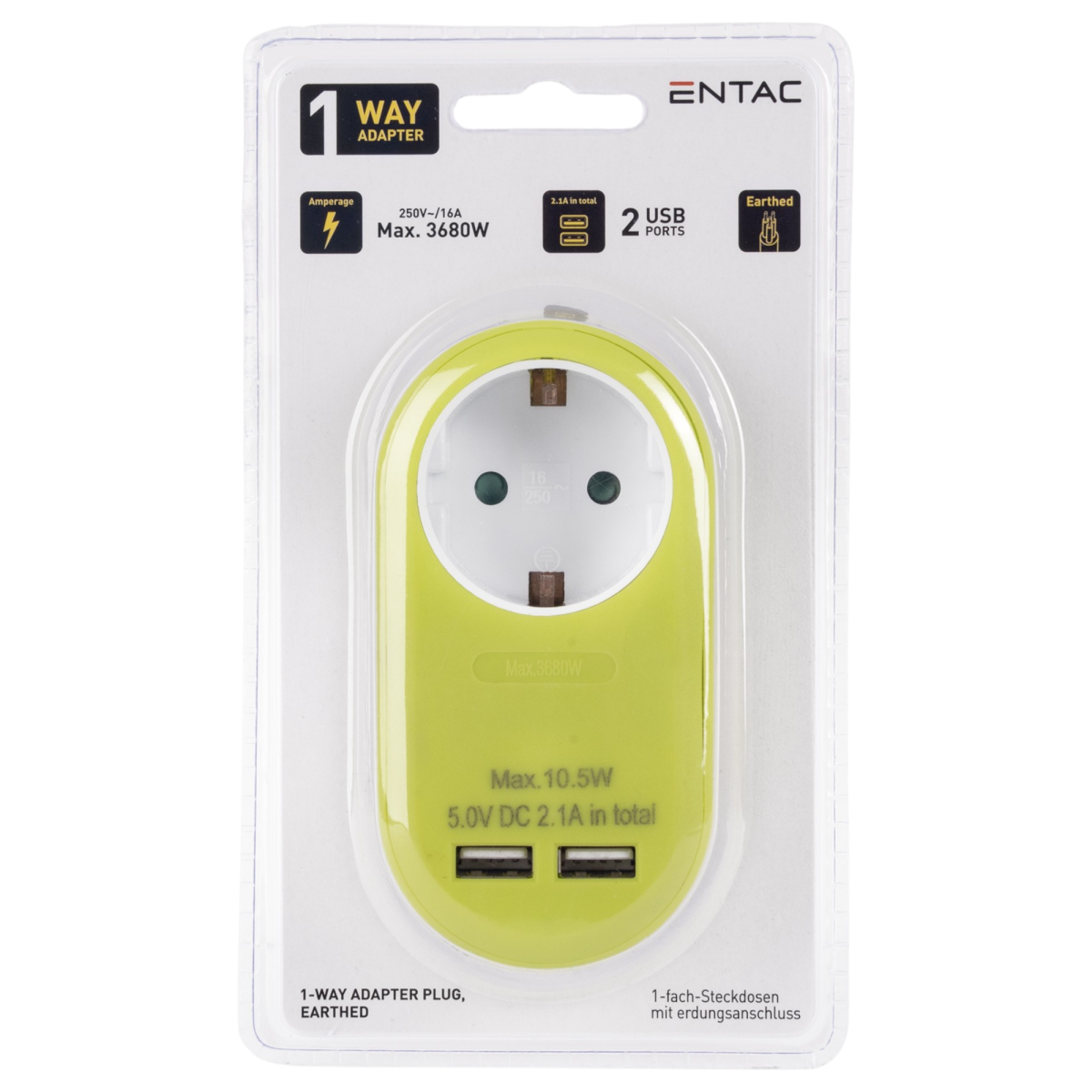 Entac hálózati adapter 1 aljzattal + 2 USB kimenettel – praktikus töltés modern kivitelben