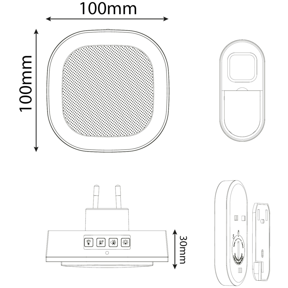 A beltéri egység közvetlenül a 220-240 V-os hálózati aljzatra csatlakozik, és beépített éjjeli fény funkcióval is rendelkezik, amely sötétben automatikusan világít.