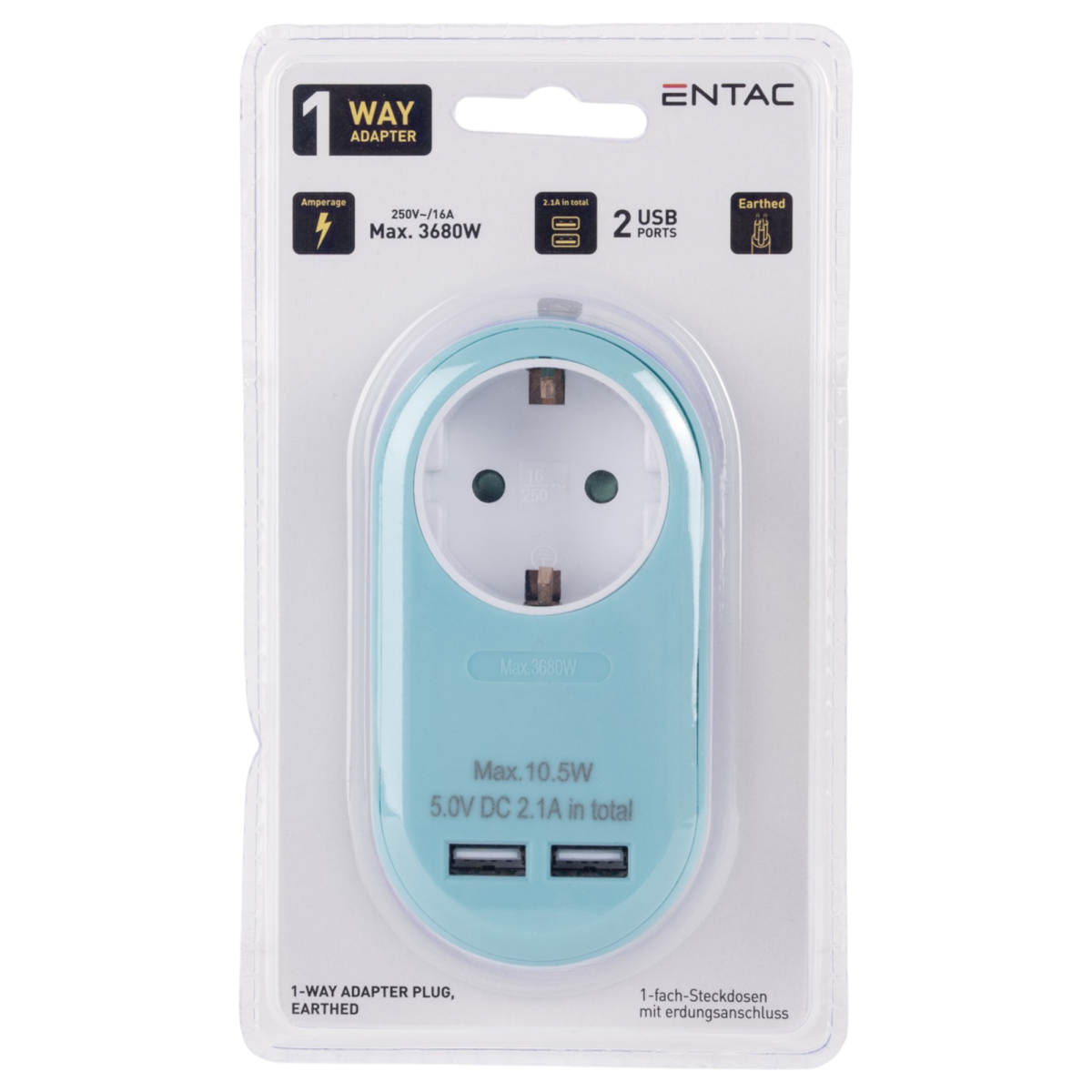Az Entac kék színű hálózati adapter egyszerre kínál stílusos megjelenést és funkcionális megoldást a mindennapi eszközeid töltéséhez. Egy földelt aljzattal és két USB kimenettel (összesen 2.1A) rendelkezik, így egyidejűleg akár három különböző eszközt is használhatsz vagy tölthetsz – legyen szó mobiltelefonról, tabletről vagy más USB-s készülékről. Kompakt méretének köszönhetően ideális választás otthonra, irodába vagy akár utazáshoz is.