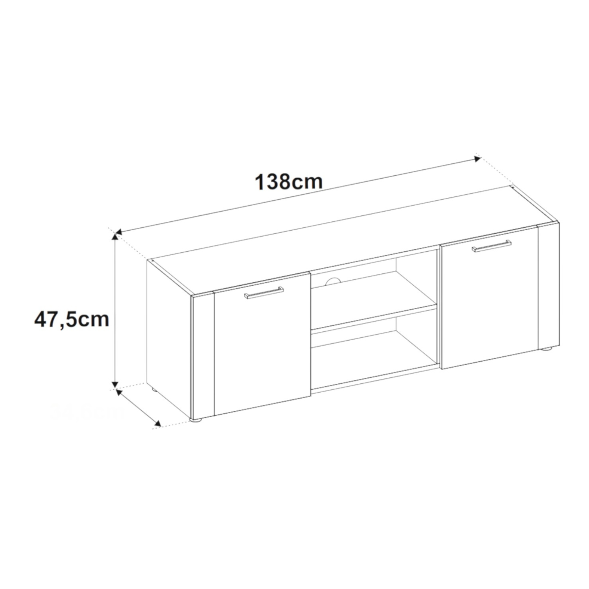 ✅ Kialakítás: 2 ajtós, nyitott polcos tárolórésszel