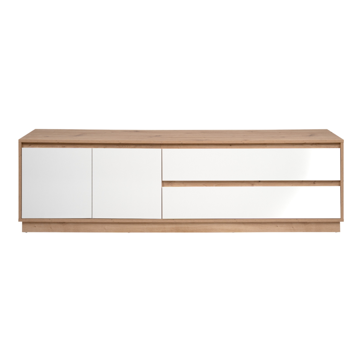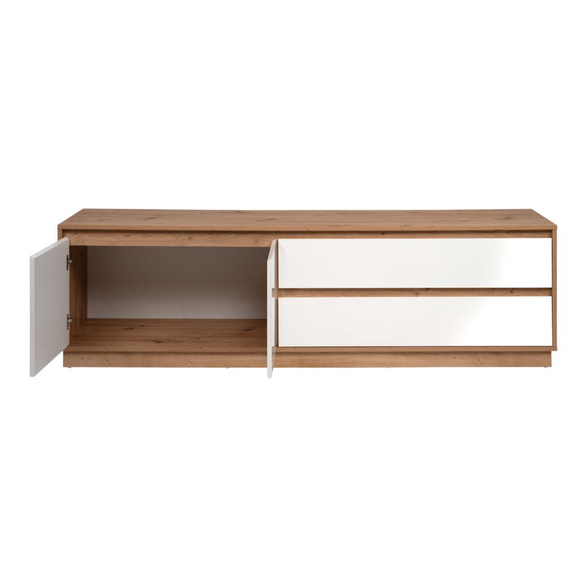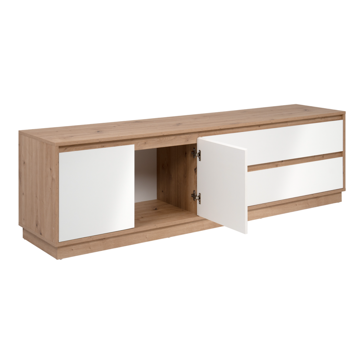 Ez a Phoenix 57A TV szekrény modern, letisztult megjelenésével és praktikus elrendezésével tökéletes választás nappaliba. Az artisan tölgy természetes hatása és a fehér fényes frontok elegáns kontrasztot alkotnak, így könnyedén illeszkedik modern és klasszikus enteriőrökbe egyaránt.