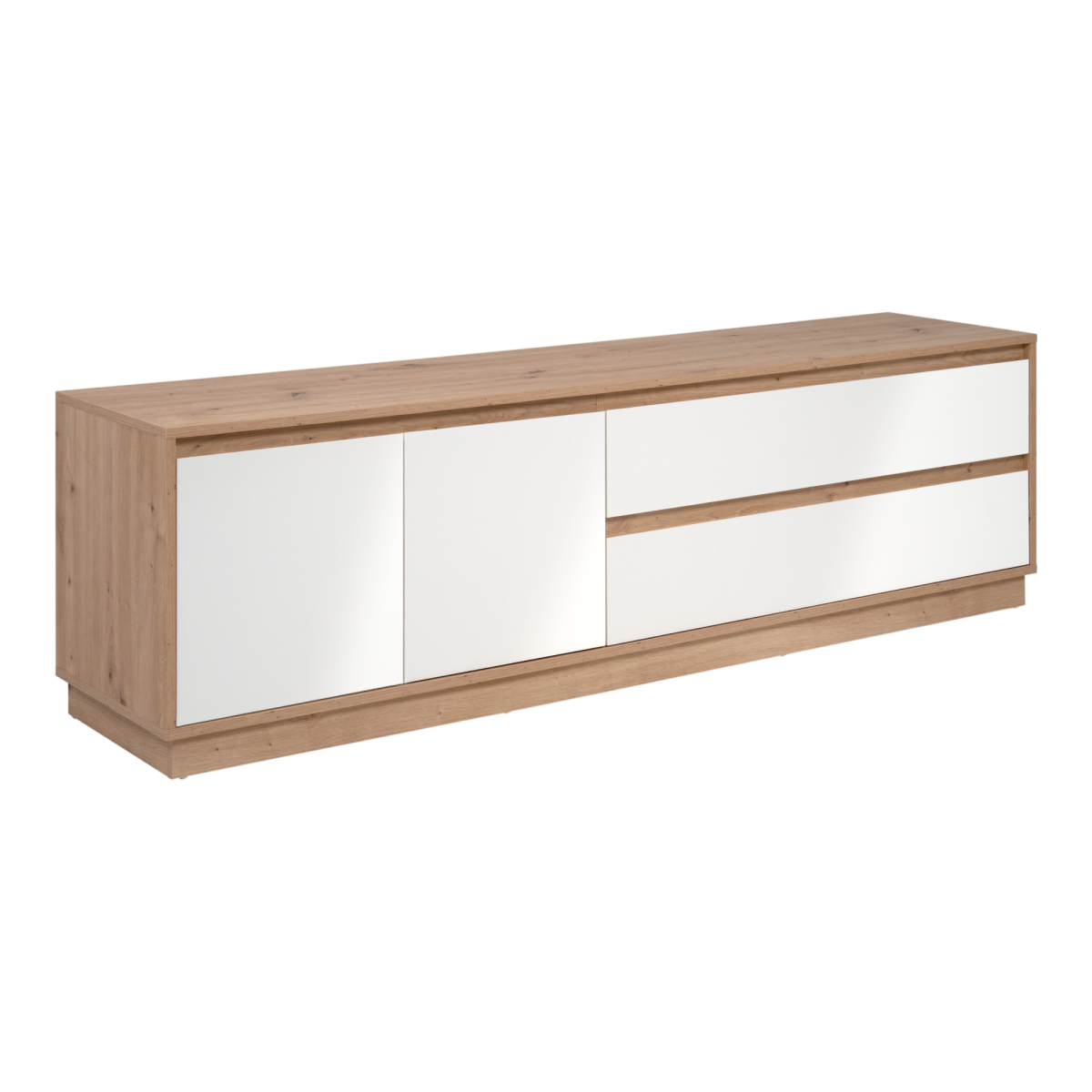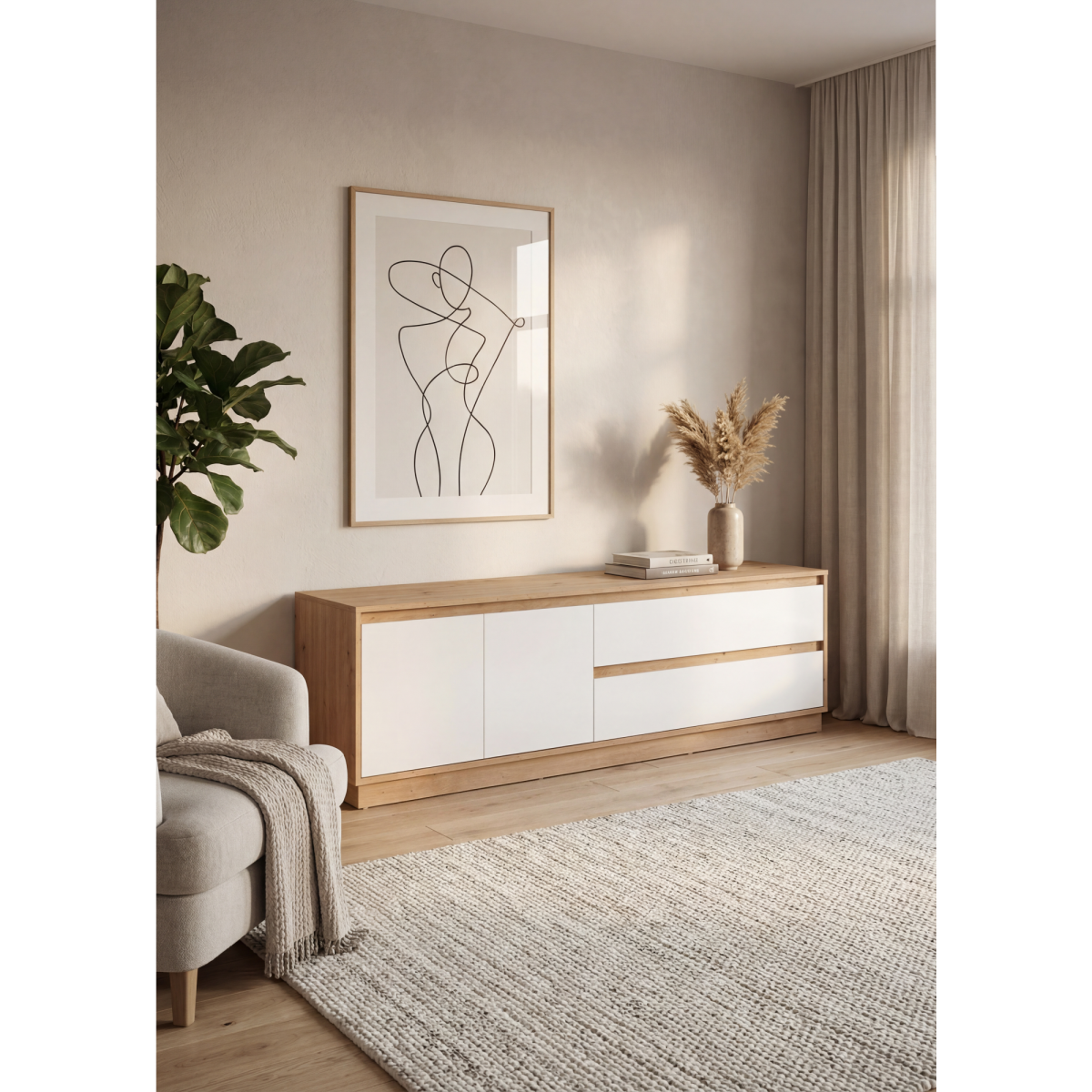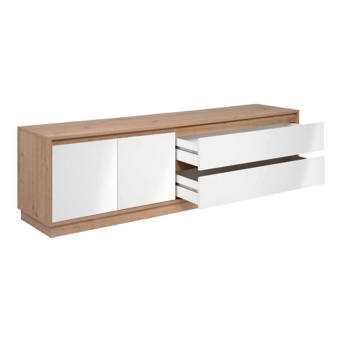 Ez a Phoenix 57A TV szekrény modern, letisztult megjelenésével és praktikus elrendezésével tökéletes választás nappaliba. Az artisan tölgy természetes hatása és a fehér fényes frontok elegáns kontrasztot alkotnak, így könnyedén illeszkedik modern és klasszikus enteriőrökbe egyaránt.