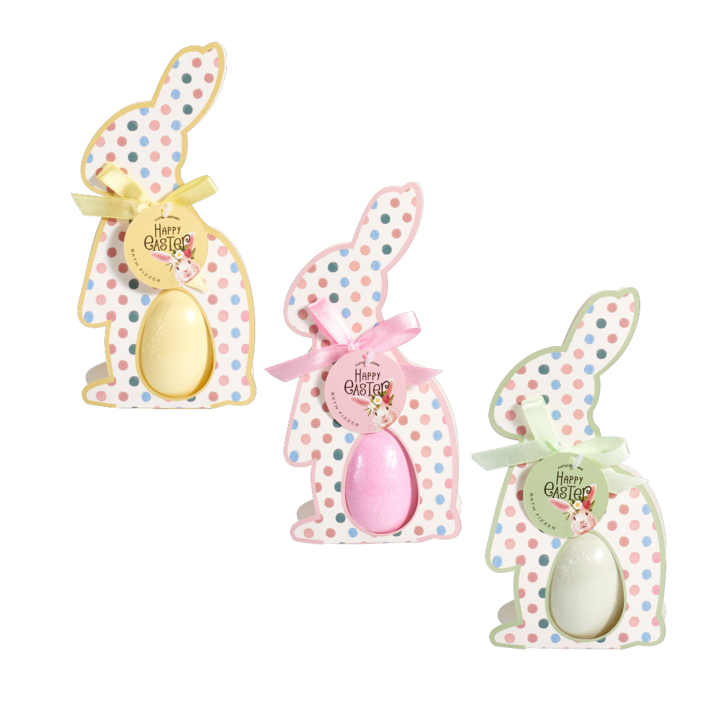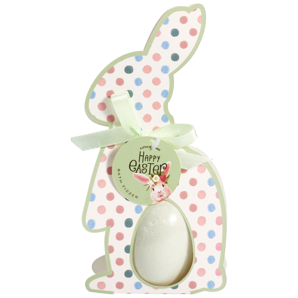Ez a tojás alakú fürdőbomba kedves húsvéti megjelenésével és dekoratív csomagolásával kellemes kiegészítője lehet az ünnepi ajándékozásnak. A fürdőbomba aranyos, nyuszi formájú csomagolásával önmagában is figyelemfelkeltő, így nem igényel külön díszítést.