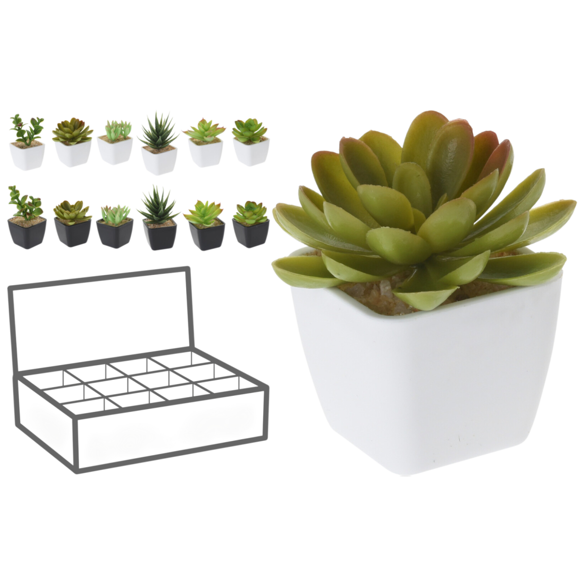 Dekoratív pozsgás műnövények fekete vagy fehér kaspóban. Ideális fürdőszobákba vagy kevés napfényes helyiségekbe, de akár az irodai asztal mutatós dísze is lehet. 12 féle modellben. Online rendelés esetén kérjük, szíveskedjen feltüntetni az igényelt modellt a rendelés véglegesítése előtt a megjegyzés rovatban! Továbbá kérjük, szíveskedjen előzetesen érdeklődni az igényelt modell rendelkezésre állásáról, mivel a készlet áruházanként eltérő.