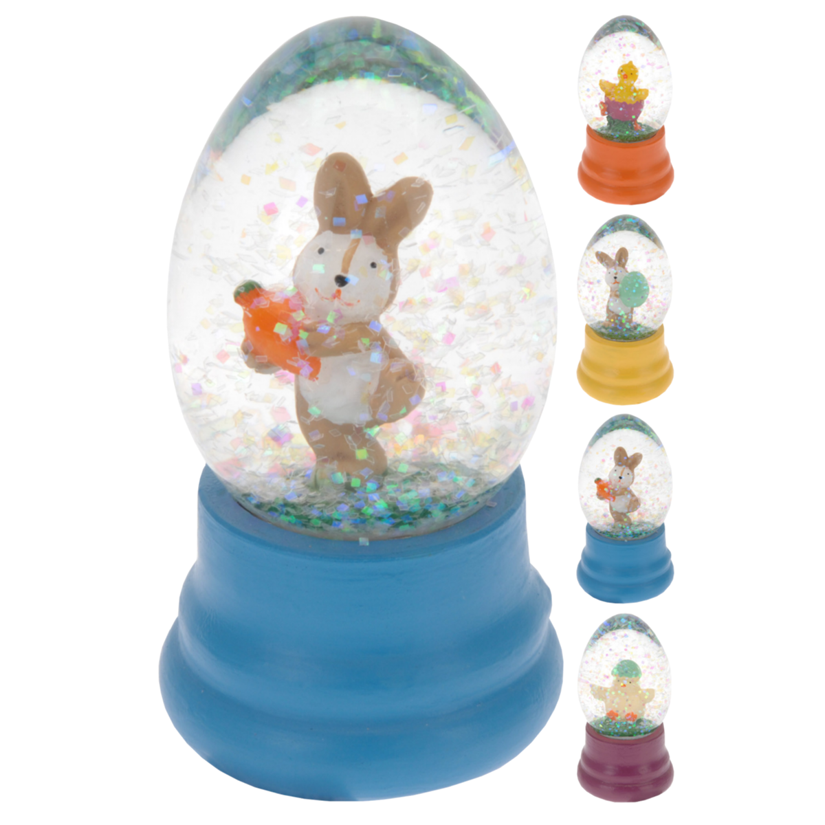 Húsvéti vizgömb tojás alakú , anyaga: polystone és üveg, mérete: 4,5x4,5x8cm, tömeg: 100 gramm. 4 különböző alapszínben kapható: narancs, lila, sárga és kék.
