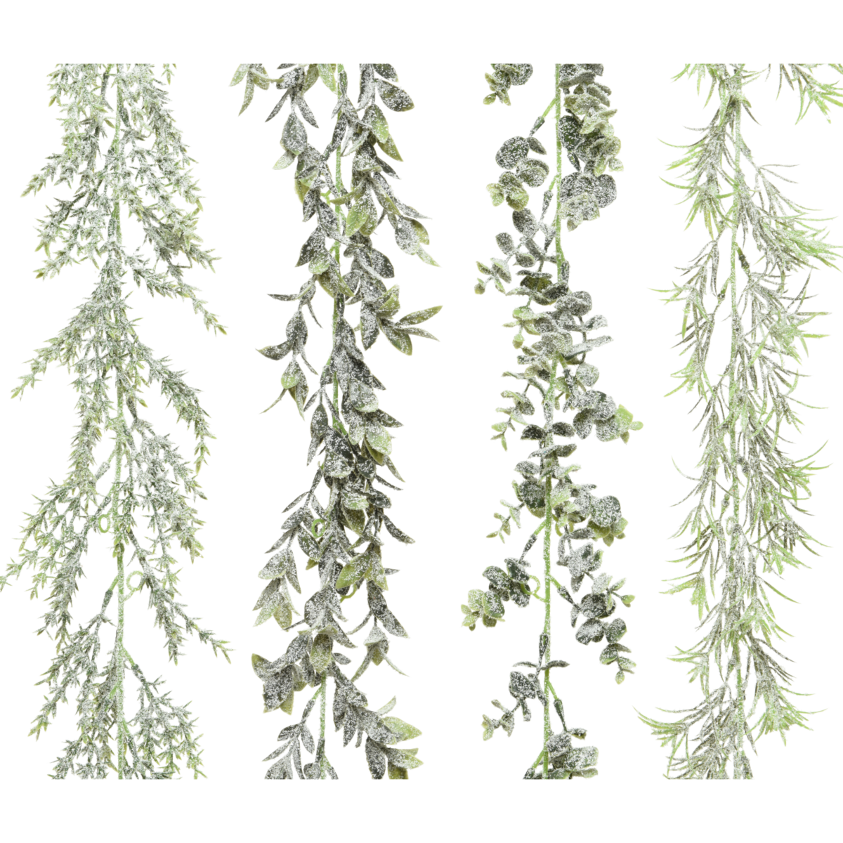 Ez a 180 cm hosszú girland négy különböző zöld növénymintát tartalmaz, mindegyiket finom fehér havas hatással díszítve. Az eltérő formájú levelek és textúrák élethű megjelenést biztosítanak, miközben remekül kombinálhatók más ünnepi díszekkel. A különböző girlandok egyedi karaktere lehetővé teszi, hogy változatos, természetes hangulatú dekorációkat alakíts ki otthonodban.