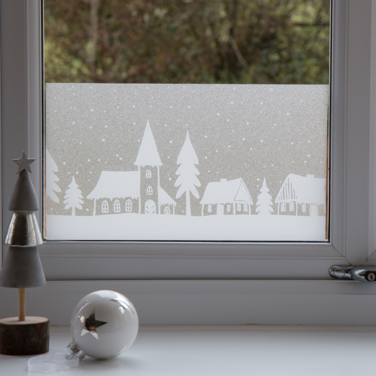Ez a 20 cm x 150 cm-es, tejfehér, félig átlátszó karácsonyi üvegfólia ház mintával remek megoldás, ha különleges, mégis visszafogott ünnepi dekorációra vágysz.