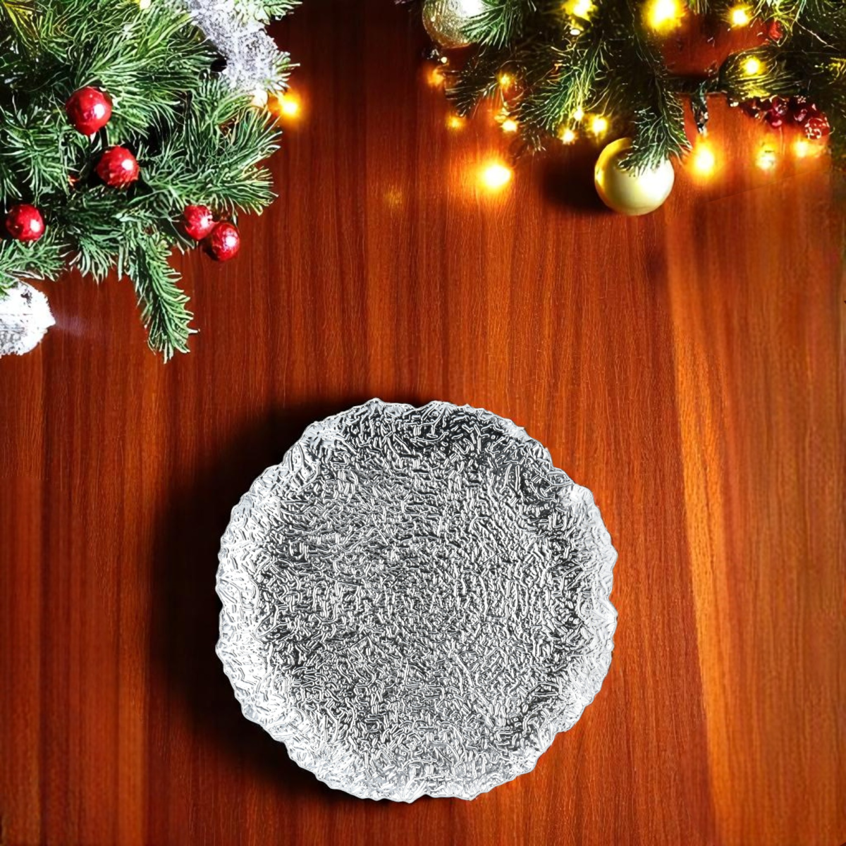 Ez a 33×33×1,5 cm-es méretű, ezüst színű dísztál stílusos kiegészítője lehet az ünnepi asztalnak. Polipropilénből készült, így könnyű és tartósabb, többször is felhasználható dekorációként. Letisztult, fényes felülete kiemeli a karácsonyi tálalást vagy adventi kompozíciók részeként is használható.