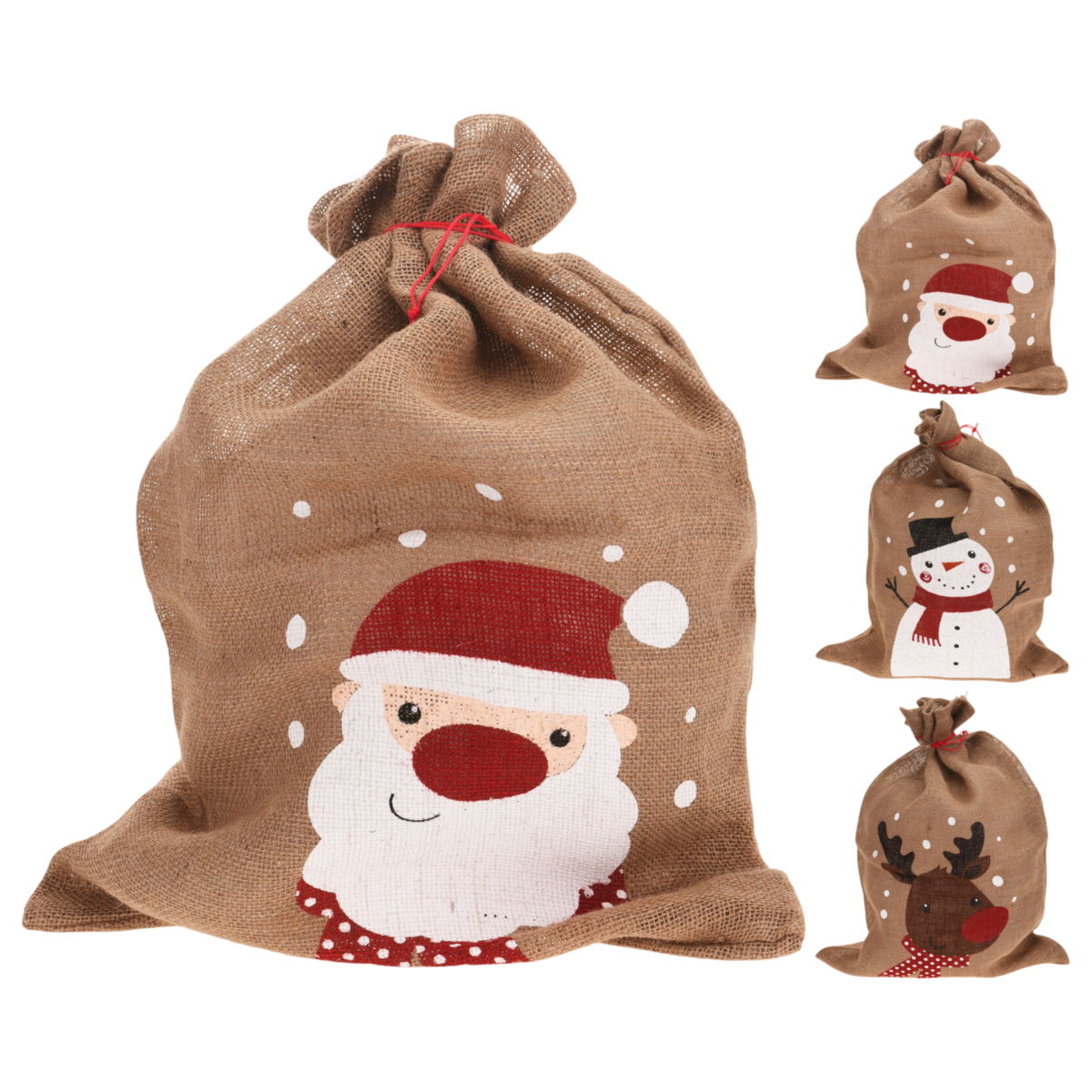 Ez a 50×70 cm-es juta ajándékzsák remek választás Mikulás-napi meglepetések vagy karácsonyi ajándékok stílusos csomagolására. A természetes hatású juta anyag időtállóbb és újrahasználható, így praktikus és környezetkímélő megoldást kínál. Háromféle mintával elérhető el, így mindenki megtalálhatja a számára legkedvesebb motívumot.