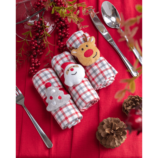 Egy szett tartalmaz egy darab kockás konyharuhát és egy darab karácsonyfás vagy rénszarvasos vagy Mikulásos karácsonyi helyjelölőt.