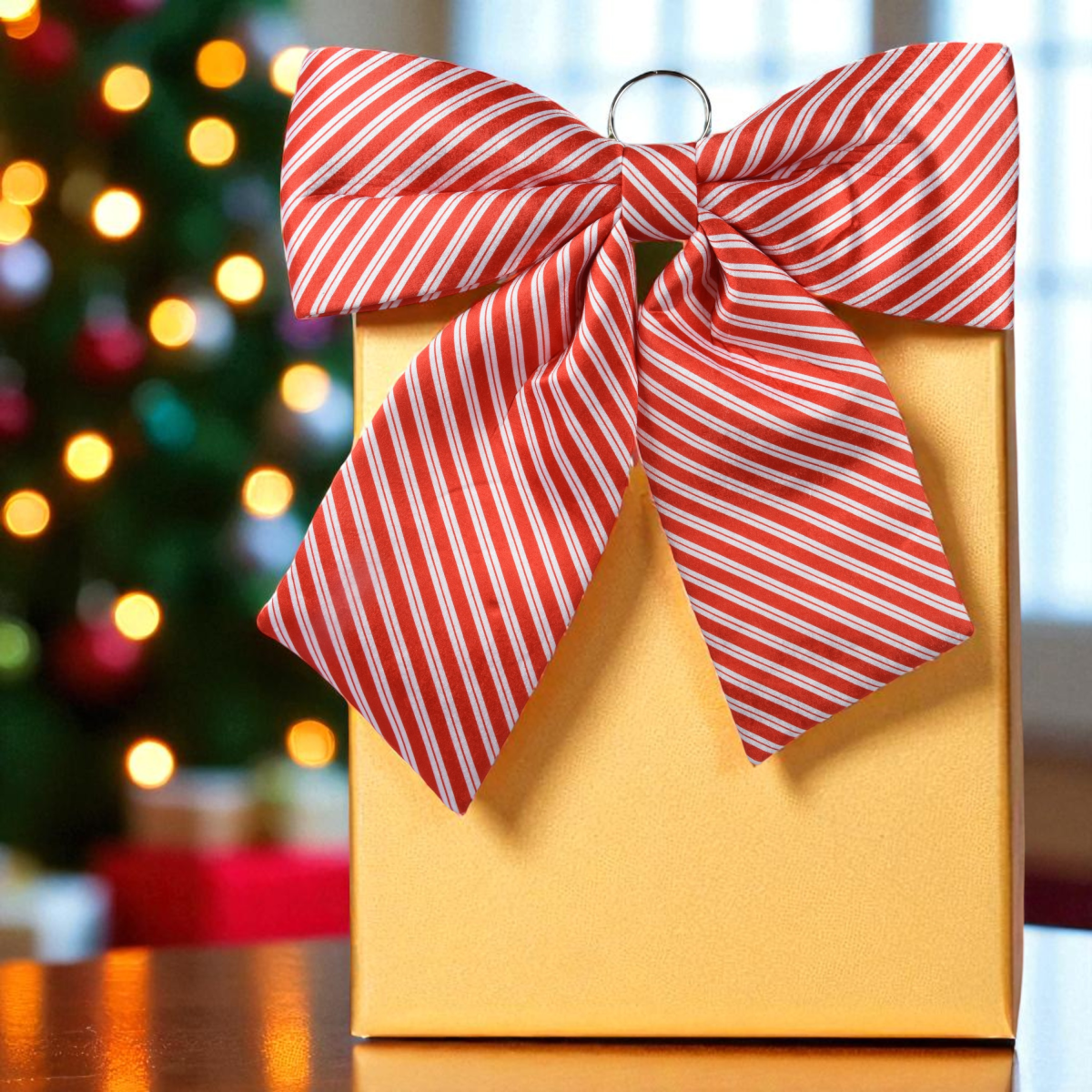 Ez az 52 cm széles, piros-fehér csíkos műanyag masni igazi figyelemfelkeltő elem lehet bármilyen csomagoláson vagy dekoráción. Tartós műanyagból készült, így könnyen formázható, és nagyobb ajándékokra, ajtókra vagy kirakati dekorációkhoz is tökéletes választás. A közepén található fémgyűrű segítségével egyszerűen rögzíthető.