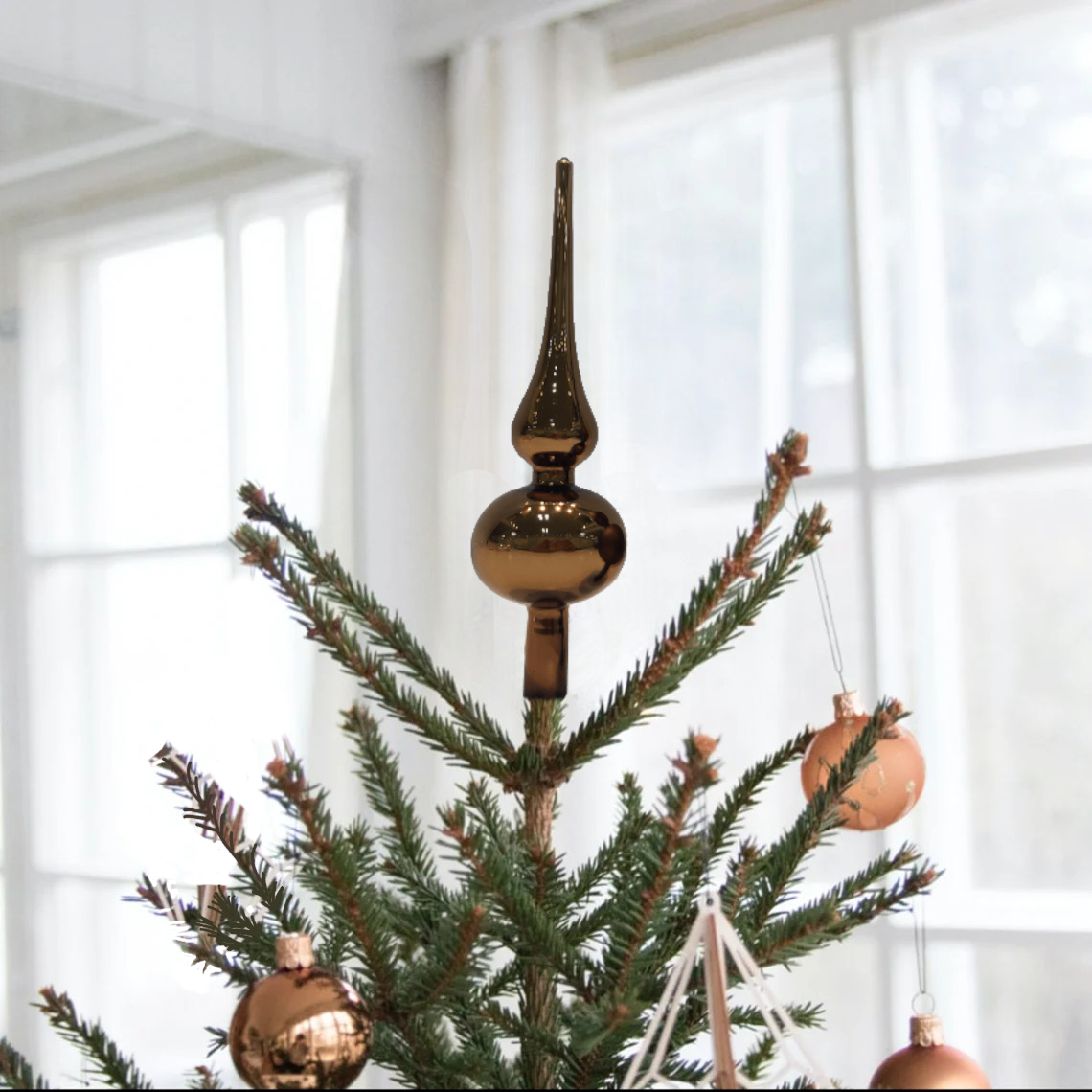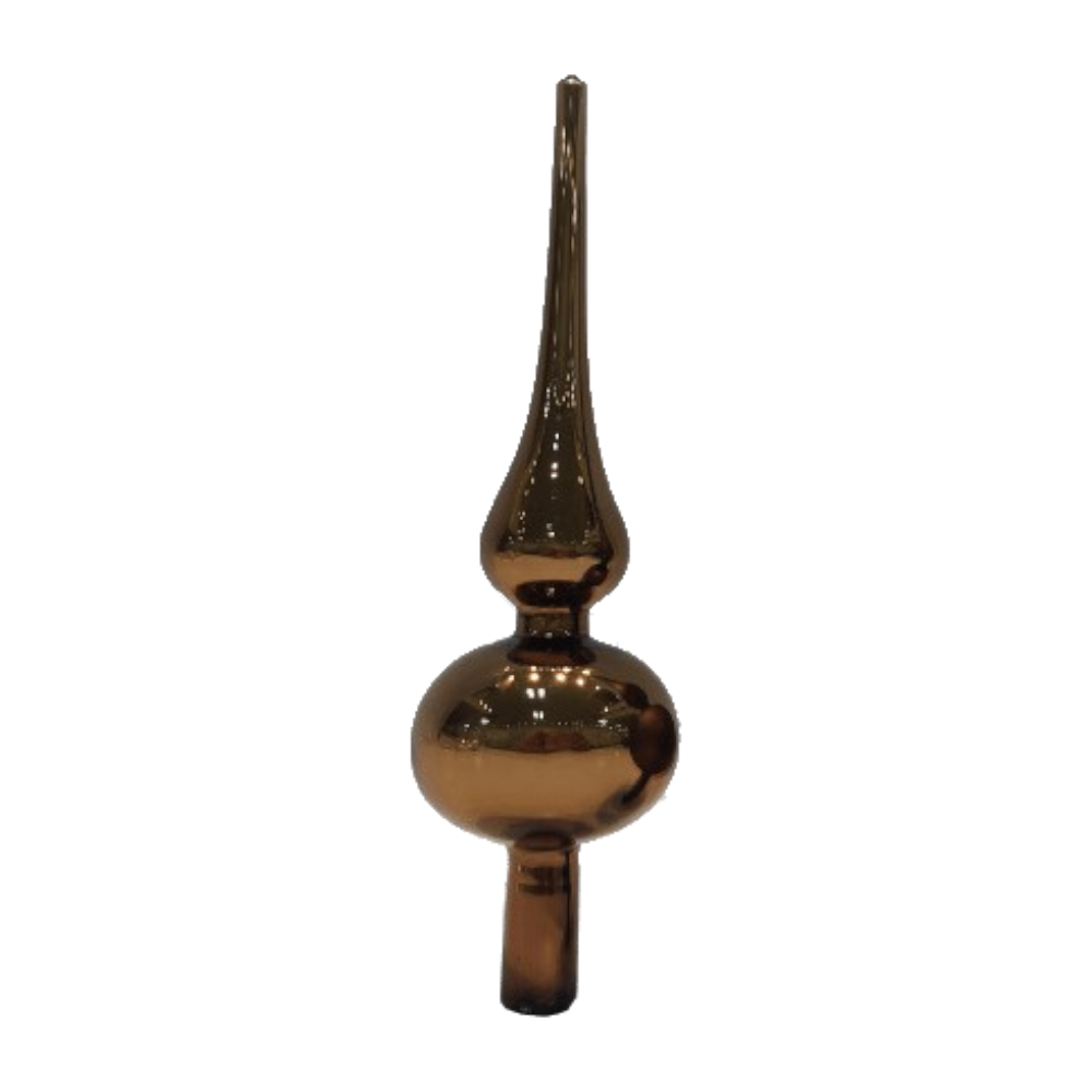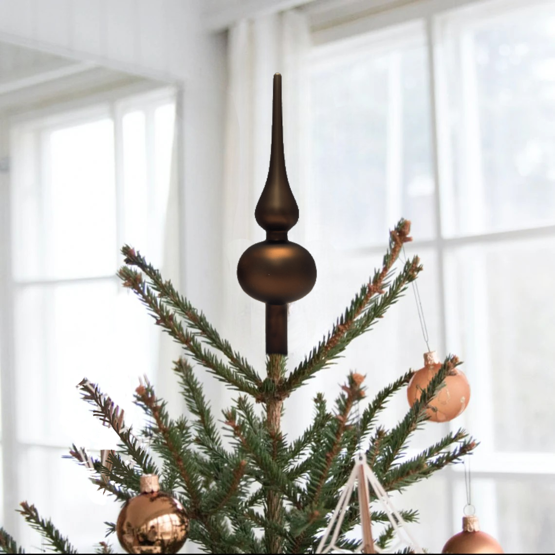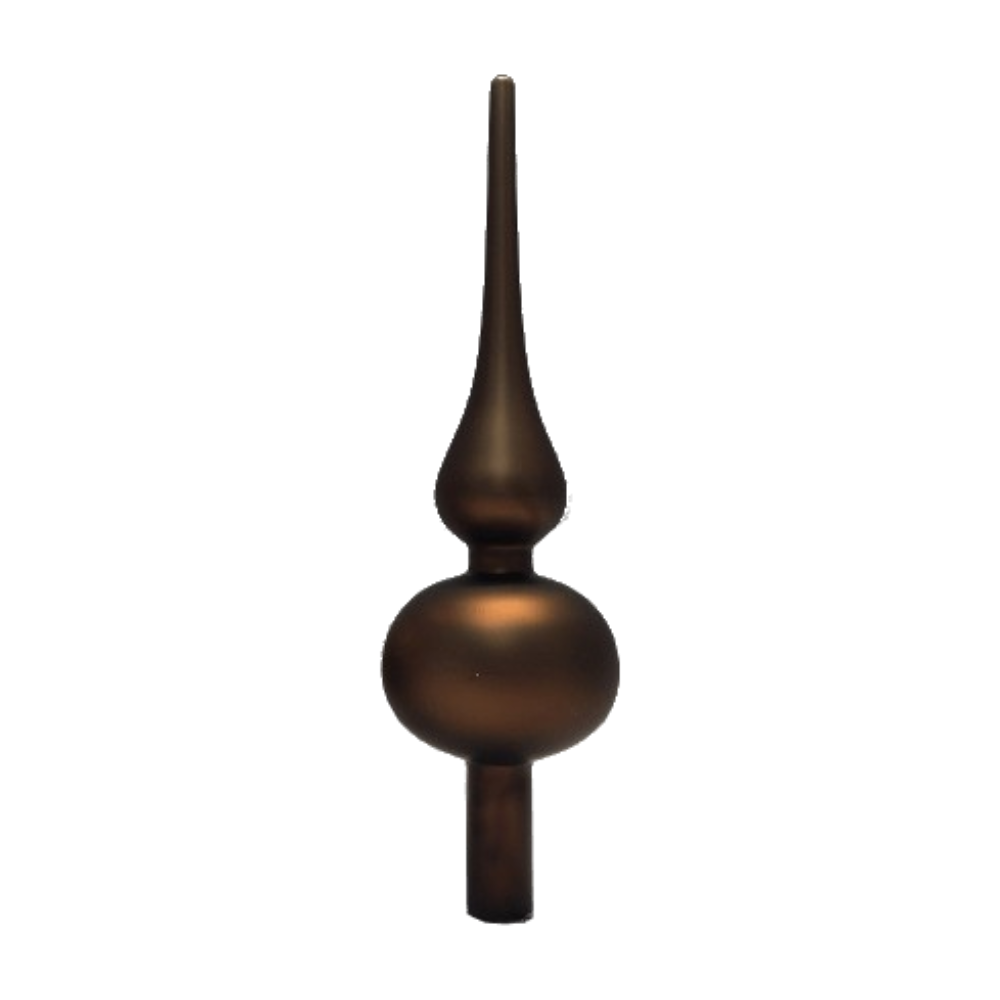 Üvegből készült karácsonyfa csúcsdísz csokoládé színben, matt vagy fényes változatban.