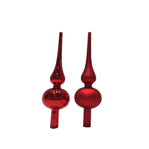 Csúcsdísz 20cm piros színű üveg,matt és fényes - Karácsonyi