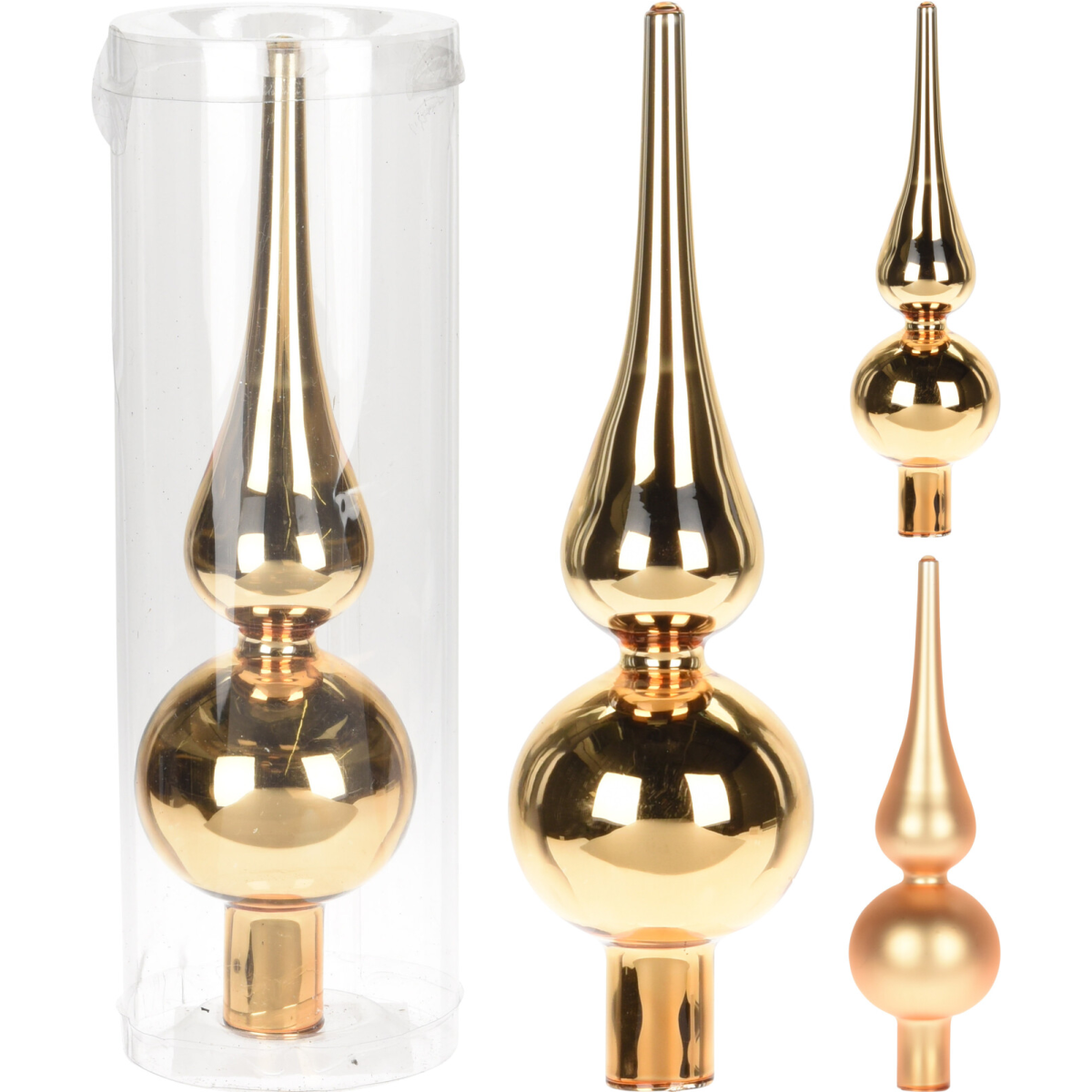 Üvegből készült csúcsdísz arany színben, 2 féle modellben. Online rendelés esetén kérjük, szíveskedjen feltüntetni az igényelt modellt a rendelés végén a megjegyzés rovatban. Ezzel a csúcsdísszel igazán meghitté varázsolhatjuk karácsonyfánkat.