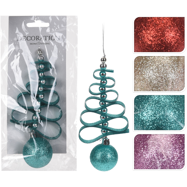 Dísz glitteres gyöngyös 12db-os 7x4x17,5cm - Karácsonyi